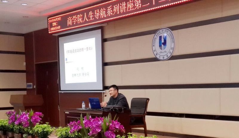4月29日晚六点于东荣大厦B310,商学院副院长、财务管理系刘柏教授为同学们带来了一场精彩的人生导航讲座。团委书记荣诗达老师、13级辅导员金博老师、10级团委副书记房汛及13级部分同学参加了本次讲座。