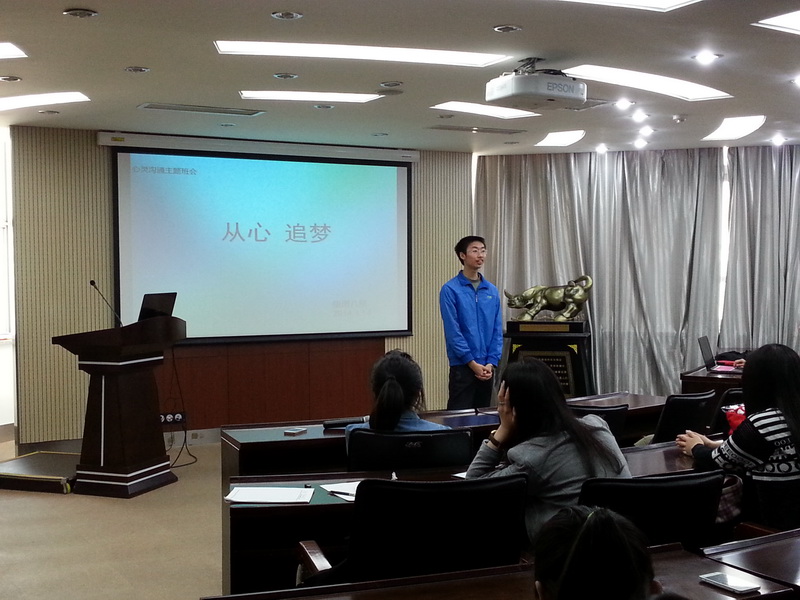 4月14日,为了使同学们能够在新学期找到积极的心态,树立正确的人生观,商学院13级信用八班在东荣A604举办了本学期第一次心理班会。此次班会除了引导同学们心理健康发展,也是为了使两名转专业的新同学能够更快地融入班集体。
