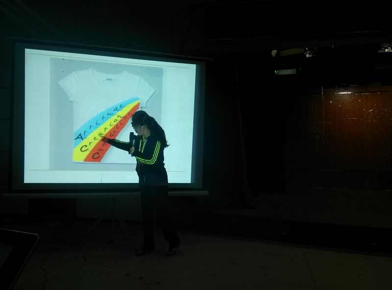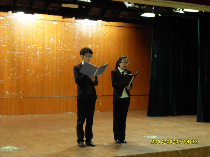 在主持人的致辞中活动正式开始。首先是班旗班服设计大赛的总结,各班代表分别在大屏幕前为主席团成员和在场的观众解读自己班级、班旗、班服所代表的意义。每个班级的班旗班服都有其独特的一面,吸引观众们聚精会神地聆听代表们的解说。
