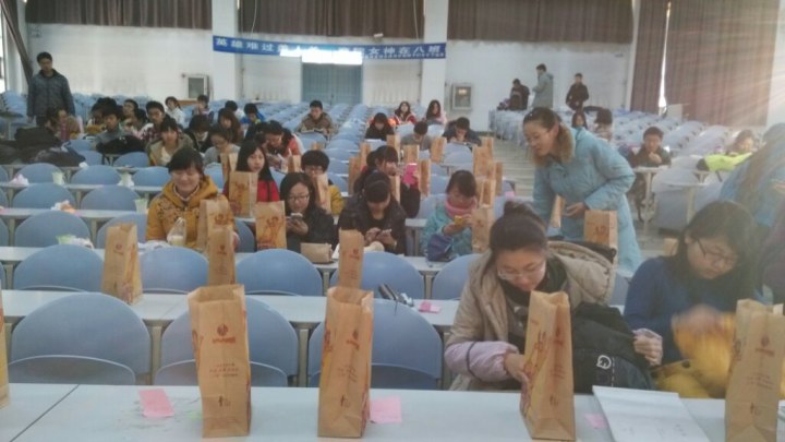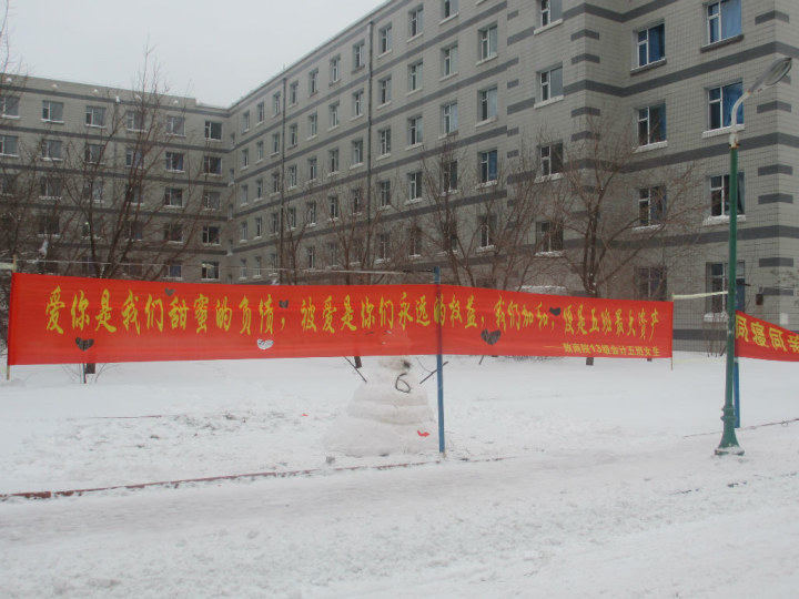 当然男生们做的不只是挂条幅而已。在每一年的女生节中,男生们都会在照顾女生的方式上不断创新。今年的女生节更是令女生们倍感温馨。肯德基爱心早餐,似乎已经成为了商学院女生节的标配。每天的清晨,都会有男生们出发前往肯德基订购早餐,然后送到女生寝室附近的食堂中,等候女生们的到来。工商管理二班的爱心占座,更是让女生们感到幸福和丝丝甜蜜。市场营销班更是通过0点短信的方式让女生们体会到家的温暖,在吉大,在商学院,在这个温暖的大家庭中。