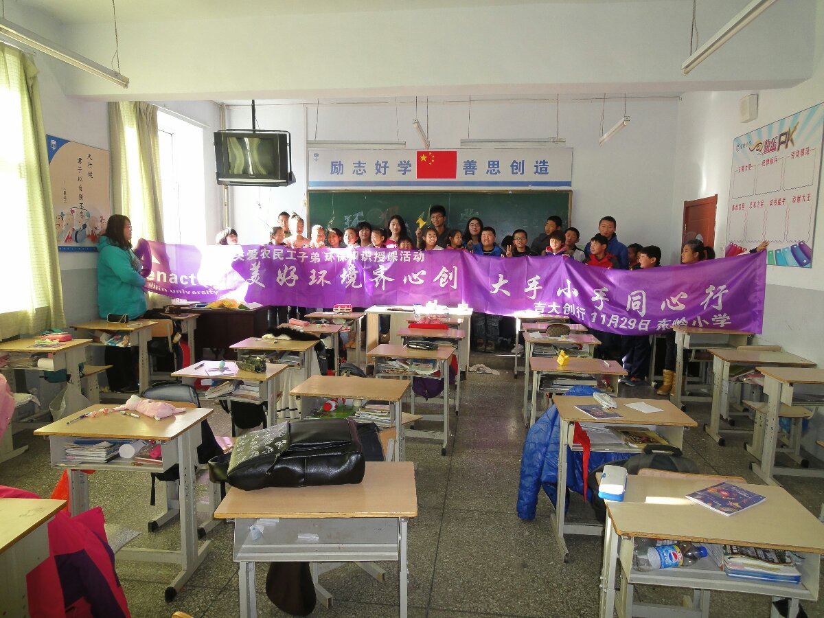 11月29日,吉林大学商学院同心志愿者协会与创行团队的同学一同来到东岭小学进行支教,为东岭小学六年级一班的同学们上一堂以环保为主题的课。