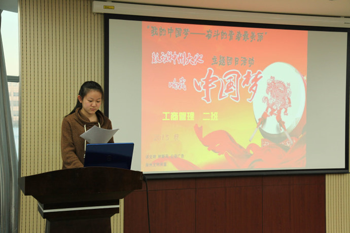 在团日活动中,各班班长、支书为各班级同学们深入讲解了十八届三中全会精神和大会对于未来中国的发展和改革而发布的《决定》相关内容。同时,他们也为同学们讲解了“中国梦”的由来,也让同学们都各自思索自己的中国梦是什么。工商管理班更是与电子学院一班共同探讨“中国梦”,在两班各自举办的“中国梦”主题班会中,两班同学与班级代表共同讲述自己理解的“中国梦”。