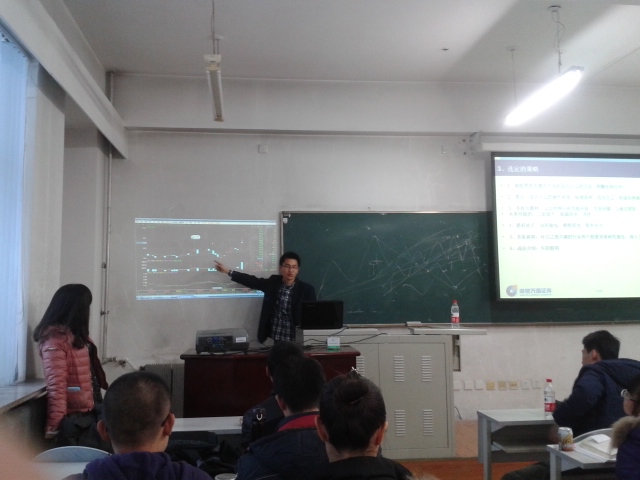 11月18日下午1点半,由企业模拟竞技协会举办的模拟炒股分享会在三教105举办,此次交流会由申银万国证券长春营业部首席投资顾问向阳师哥主讲,主要与大家交流了股票实战的一些方法与技巧。