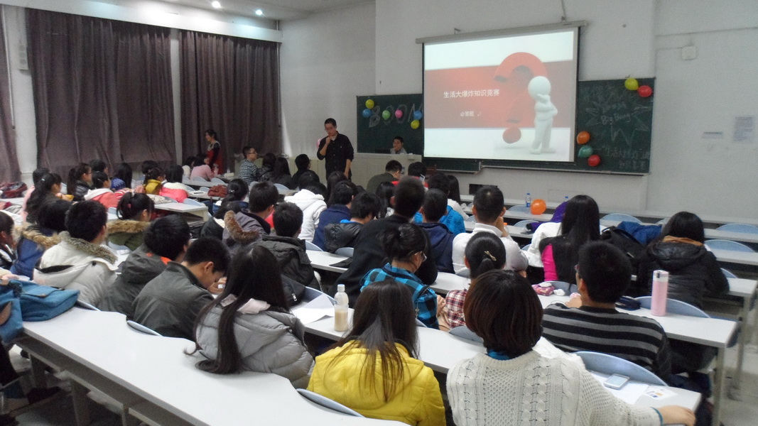 11月24日下午1点半,为让13级同学们更快更好地掌握生活技巧,适应崭新的大学生活,由商学院社联管理部主办的“生活大爆炸”知识竞赛在三教第十三阶梯教室成功举办。团委副书记庄翘瑞、团委副书记杨明昊、团委副书记兼社团联合会主席王若龙、同心志愿者协会会长苑玉梅等出席了活动。活动现场气氛热烈,同学们踊跃参与。