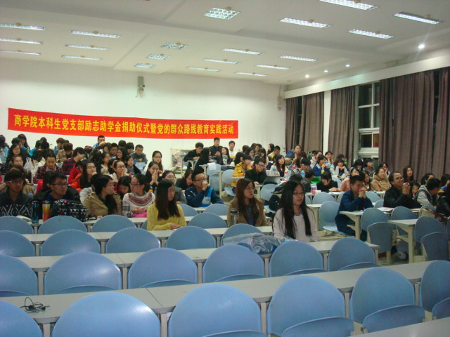 11月2日晚上六点,商学院本科生党支部在三教13阶举行了党的群众路线教育实践活动暨党支部助学基金捐助仪式。