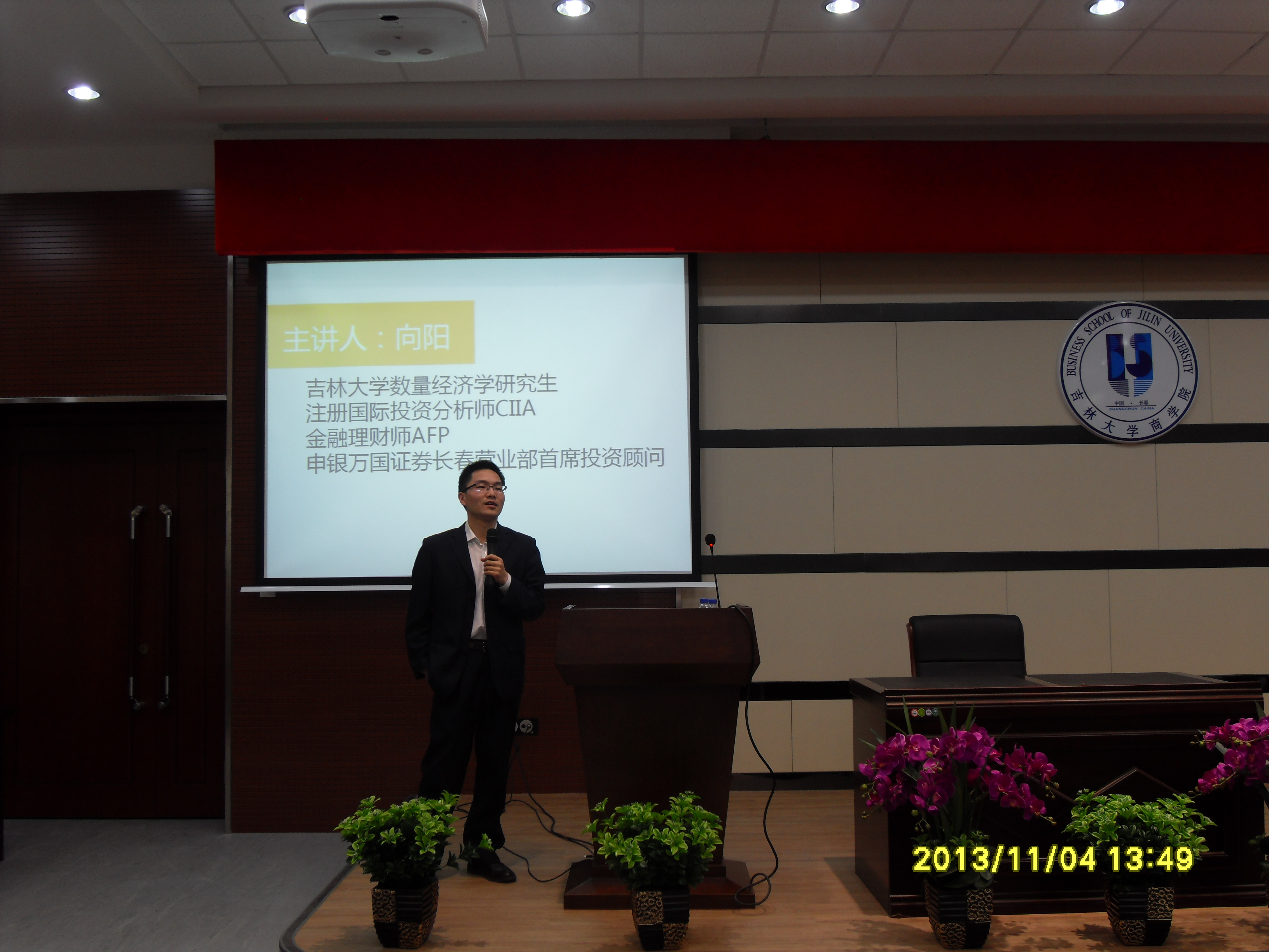 11月4日下午1点半,由企业模拟竞技协会举办的申银万国杯模拟炒股大赛宣讲会在东荣B310开讲,此次宣讲会及模拟炒股大赛面向吉林大学各院在校学生,出席大会的嘉宾有13级辅导员金博老师和特邀主讲嘉宾申银万国证券长春营业部首席投资顾问向阳师哥。