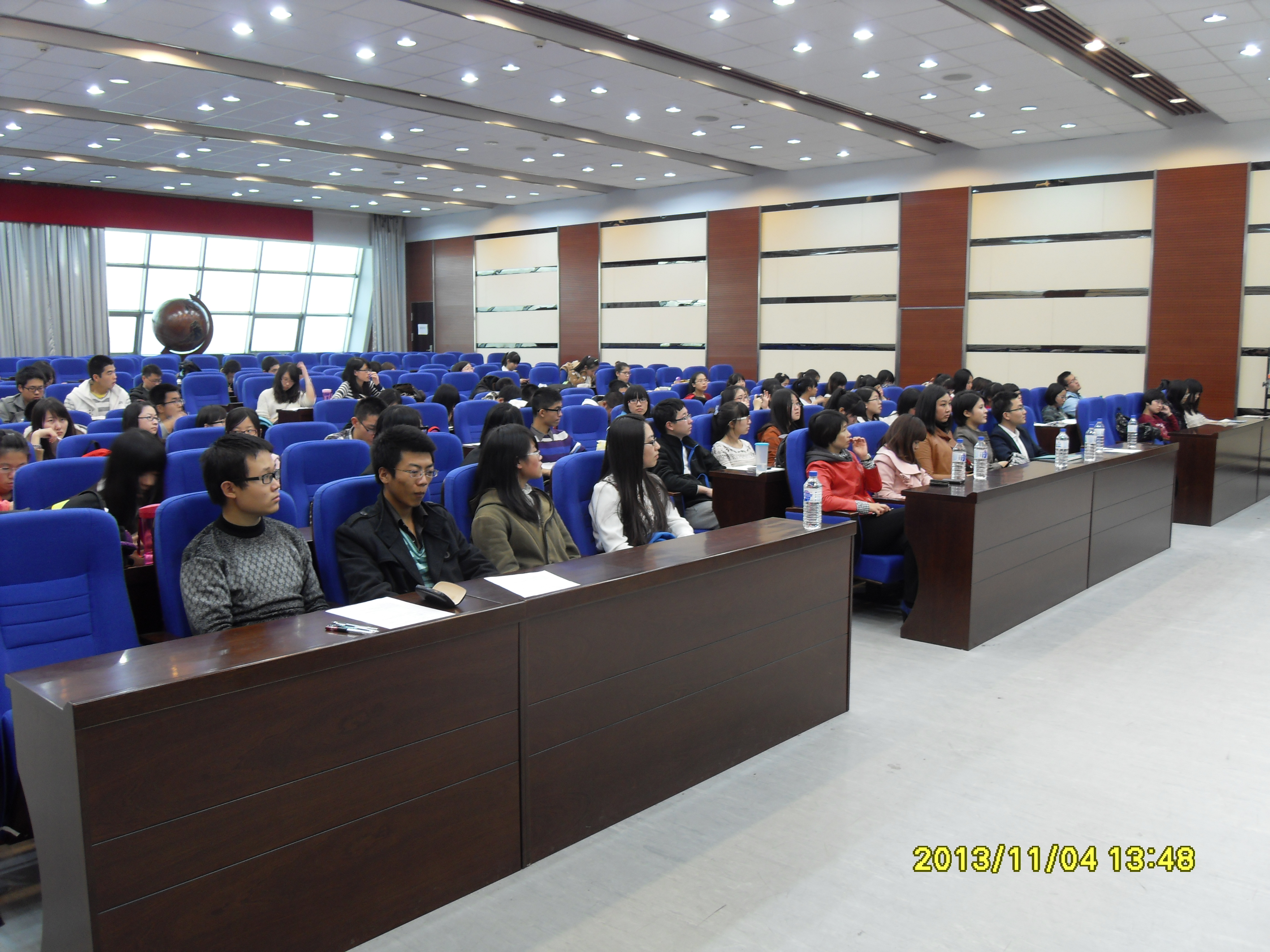 宣讲会由陈雅慧同学主持,大会开始,主持人对宣讲目的和内容进行了简要地概括并为大会致词。接下来,主讲嘉宾向阳师哥上台和同学们分享了自己的心路历程及求职经历,并对申银万国做了简要介绍。向阳师哥的话给了现场同学许多启示,正像他说的那样,“你拥有的越多才越具说服力”。大学就应该是在学习的基础上全方面地完善自己,而他的经验分享也使现场同学对本次模拟炒股大赛产生了更浓厚的兴趣,现场气氛热烈。
