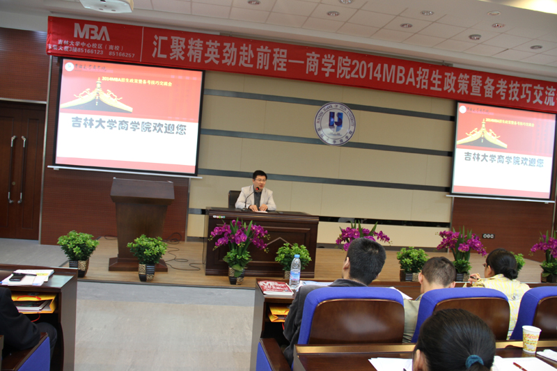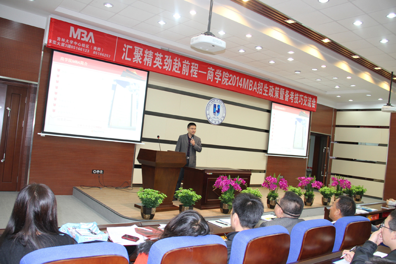金秋十月,硕果累累。在这样一个美好的季节里,吉林大学商学院MBA教育中心与怀揣梦想、追求卓越的各位MBA备考考生和商学院招办全体老师相聚在吉林大学商学院,共同解读国家和吉林大学最新的招生政策信息,一起分析备考重点难点,相互交流复习方法和答题技巧。2013年10月13日上午9:30分,商学院“汇聚精英 劲赴前程”2014年MBA备考技巧交流会在吉林大学前卫南校区东荣大厦310报告厅成功举行。交流会由商学院MBA招生办王春艳老师主持。