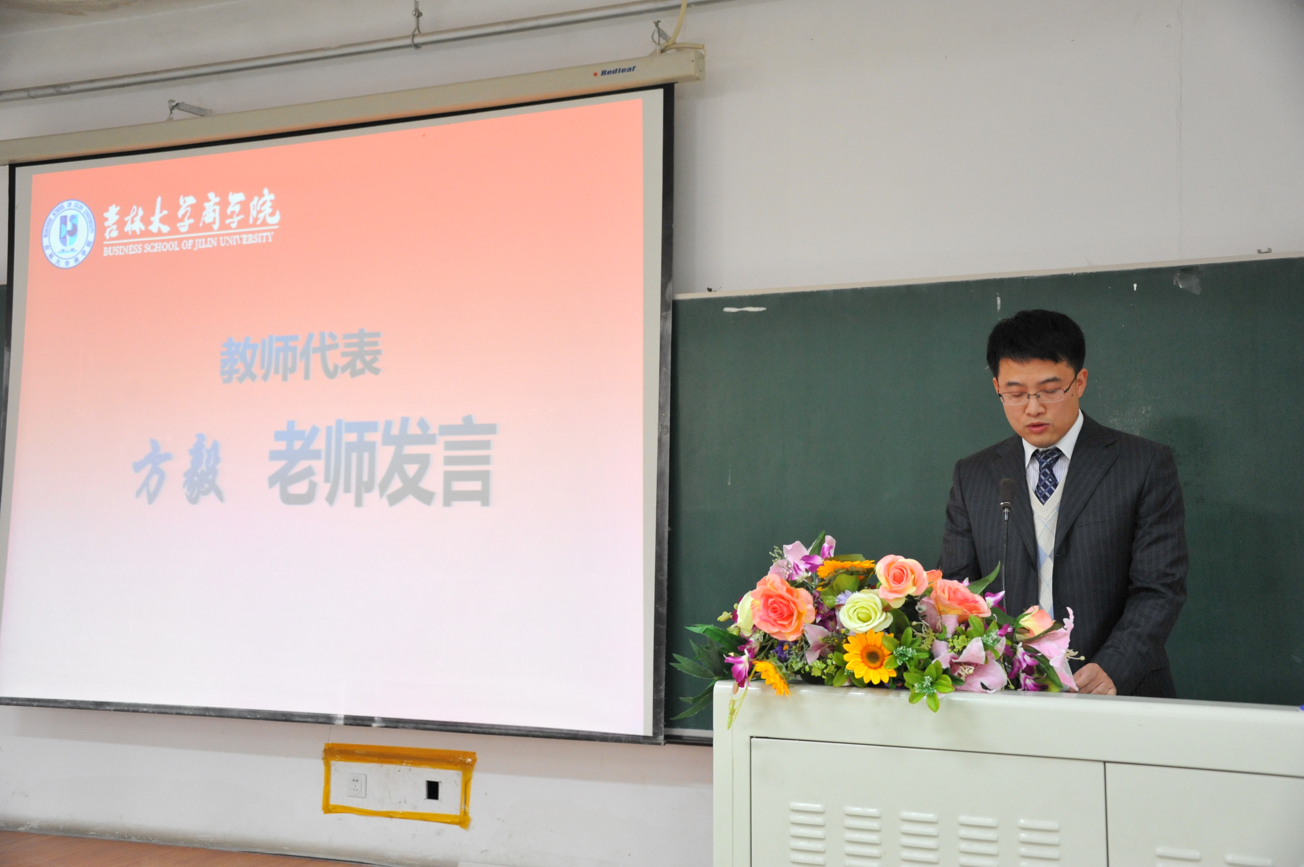 教师代表方毅老师也向同学们传授了学习经验。他阐明了作为一个商学院的学生应当具备的素质和肩负的责任,强调大学的首要任务是学习,使新生们更加明白了学习的重要性,明确了自己的方向。
