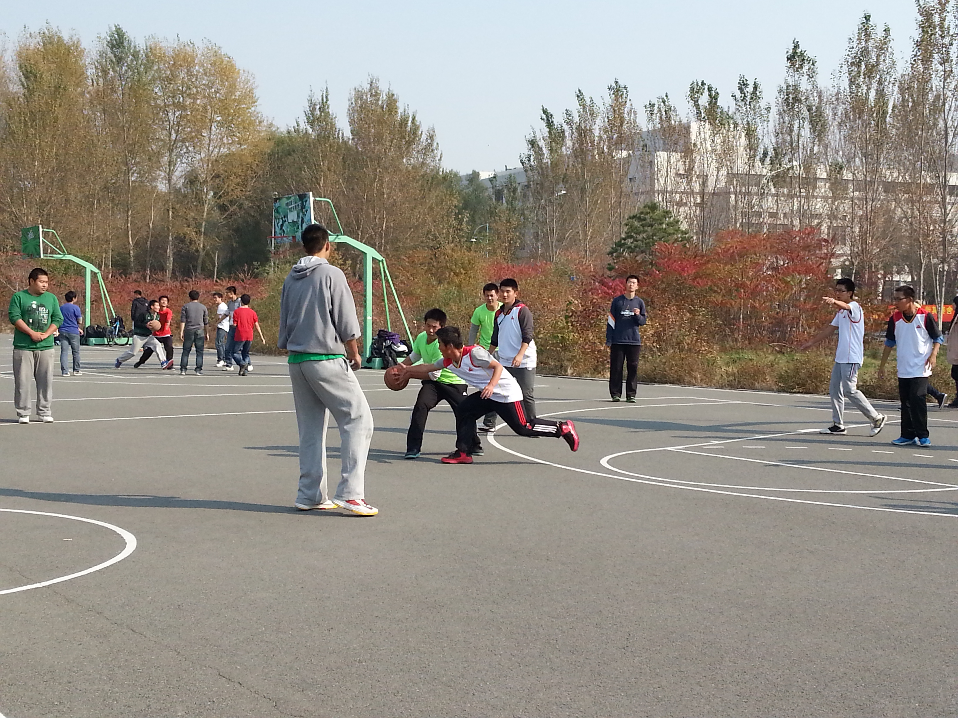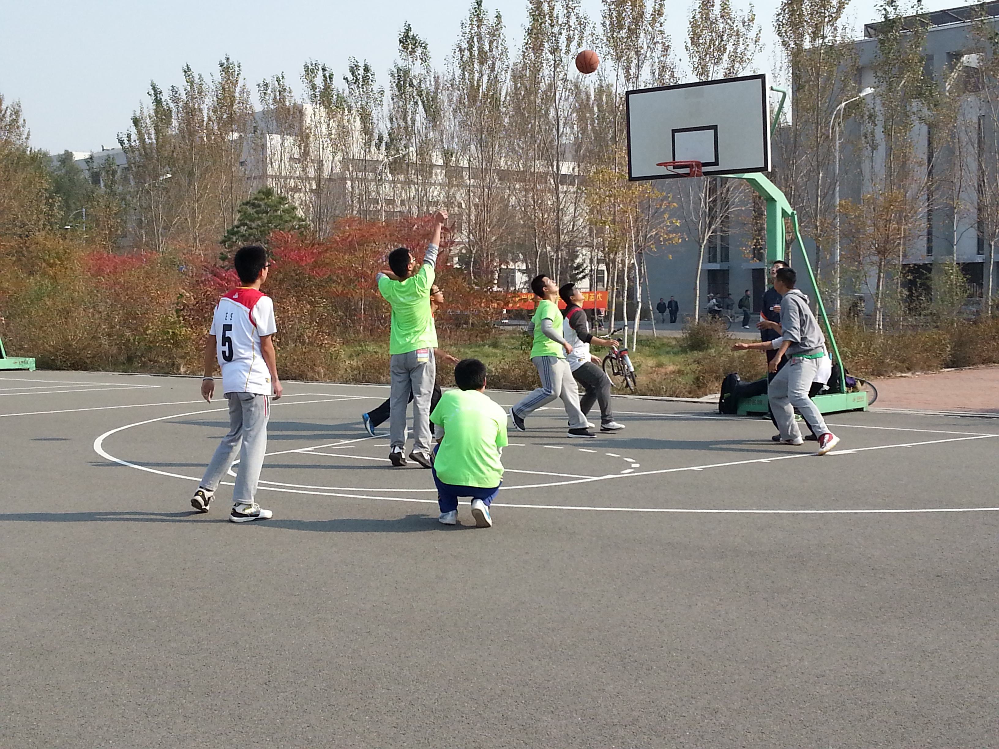 10月17日中午,伴随着经信篮球场哨声的响起,13级信息一班与工管二班篮球比赛正式开始。双方你追我赶,拼命争抢,刮起了一阵青春运动风。