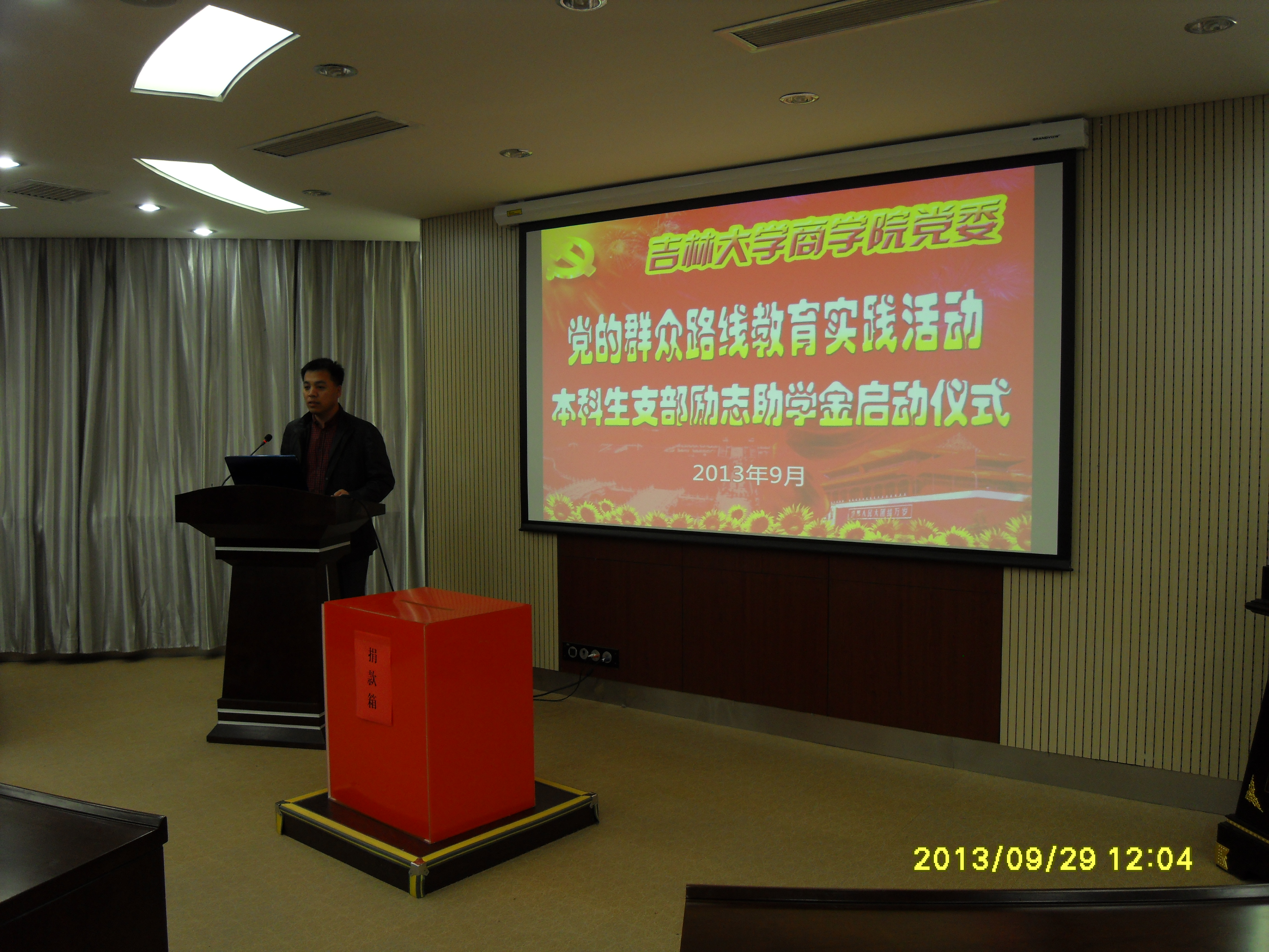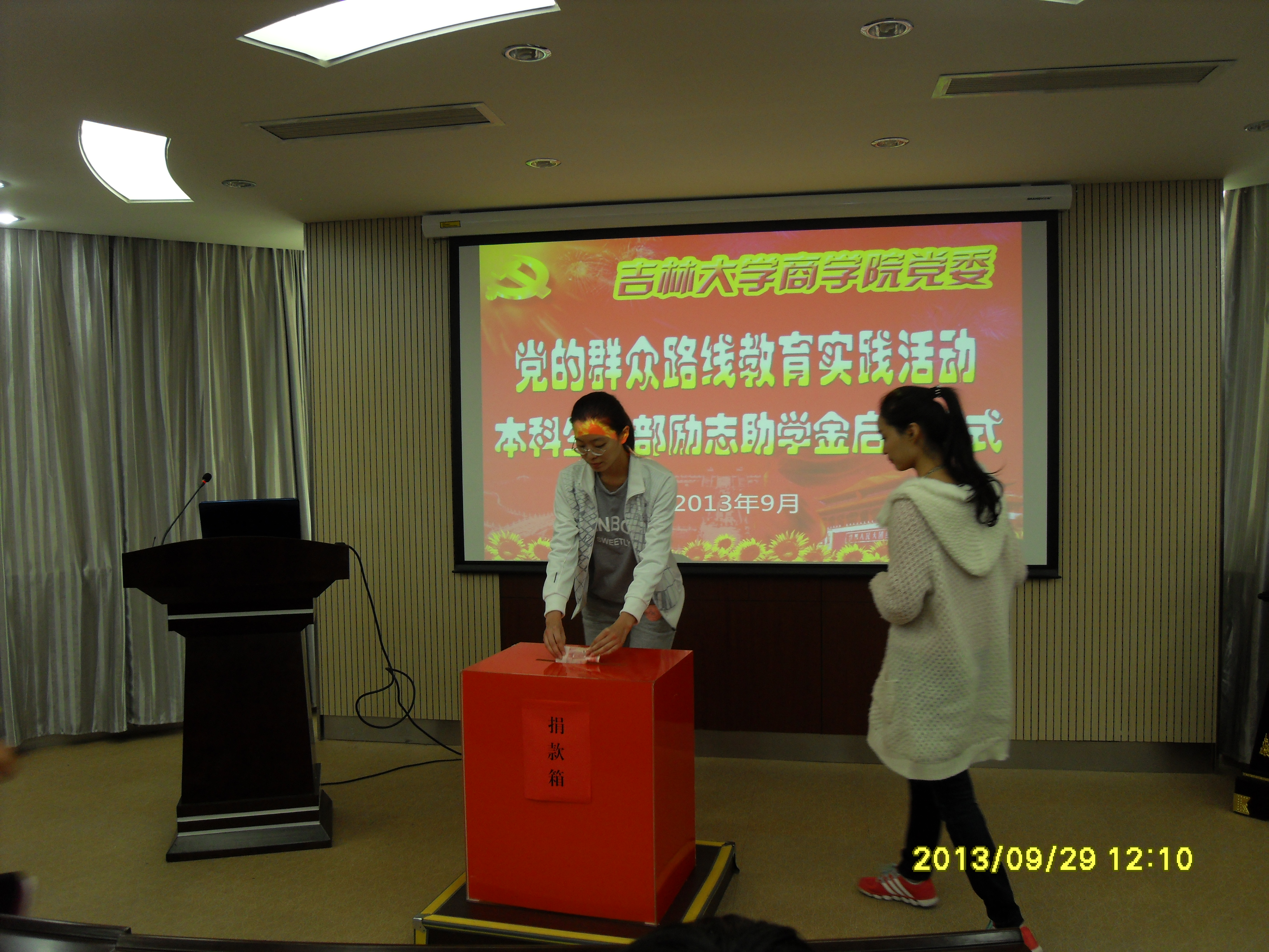 9月29日中午12点,党的群众路线教育实践活动之本科生支部励志助学金启动仪式在东荣604拉开帷幕。出席活动的有商学院党委副书记兼副院长范庆文老师、党委秘书顾冬捷老师、12级辅导员荣诗达老师、13级辅导员金博老师以及本科生支部全体党员。