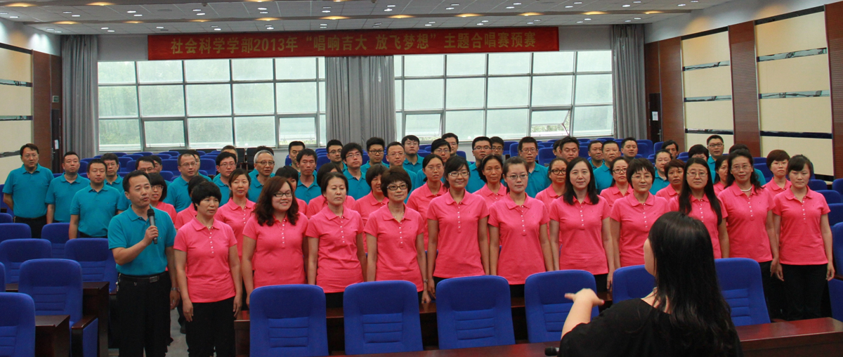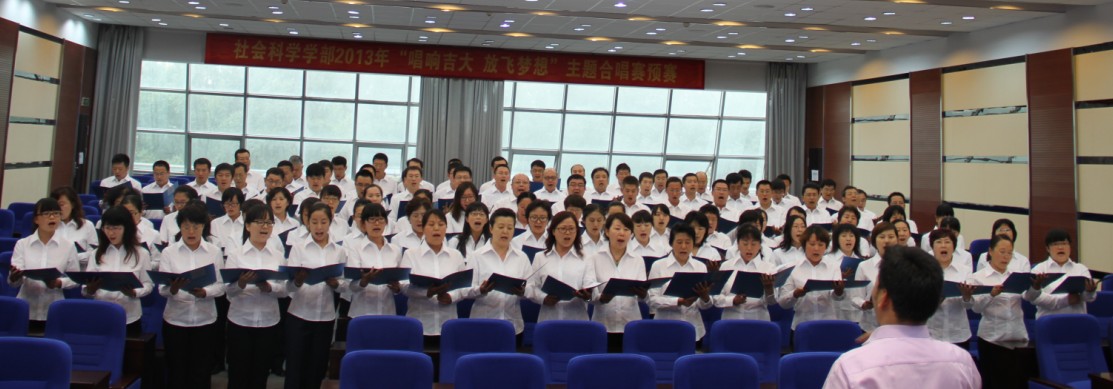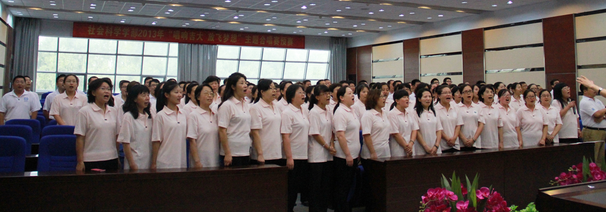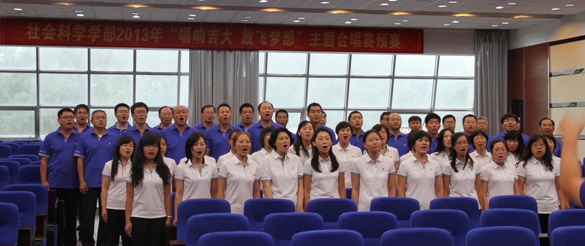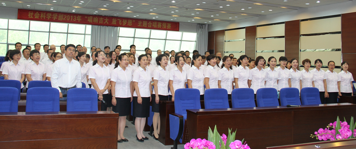 2013年9月4日下午,社会科学学部2013年“唱响吉大放飞梦想”主题合唱赛预赛在吉林大学南校区东荣大厦商学院报告厅顺利举行。社会科学学部经济学院、法学院、行政学院、商学院、东北亚研究院、马克思主义学院分别进行了各自精彩纷呈的演唱。
