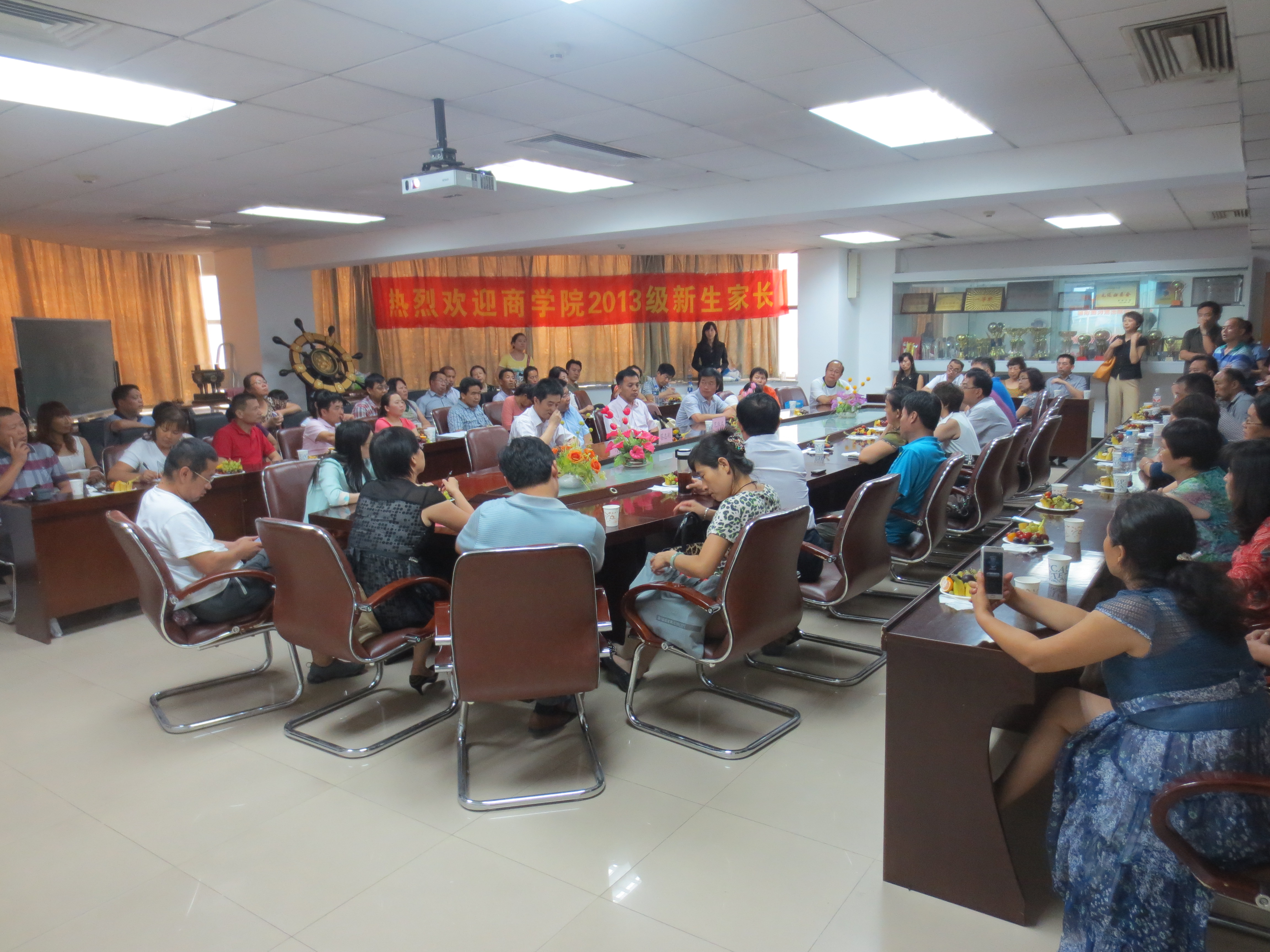 8月23日下午一点半,吉林大学商学院2013级新生家长座谈会在东荣A306正式举行。出席本次会议的有:商学院党委书记蔡志刚老师,党委副书记兼副院长范庆文老师,副院长张世伟教授,12级辅导员荣诗达老师,以及新生辅导员金博老师。