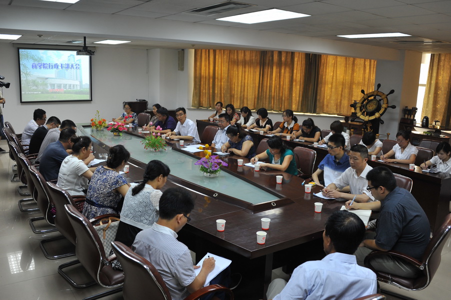 8月11日上午9:00,商学院全体行政干部齐聚东荣306会议室,在党委书记蔡志刚同志的主持下召开了新学期第一次全体行政干部大会。