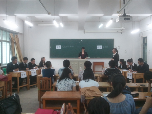 6月2日晚六点,在逸夫教学楼413教室,商学院与汽车工程学院,行政学院的友谊辩论赛准时开始。