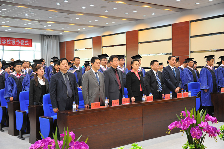 伴着雄壮的中国人民共和国国歌,商学院2012届专业硕士学位授予仪式暨毕业典礼隆重举行。