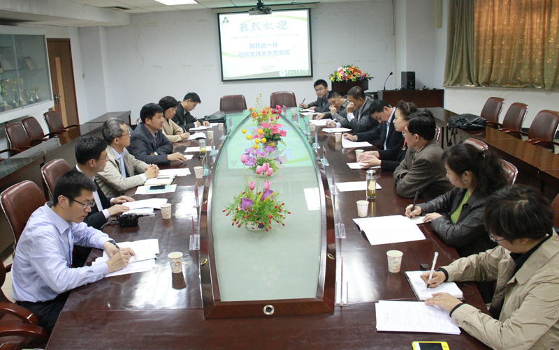 2013年5月10日上午9时,中国人民银行日照市中心支行党委书记、行长刘艳武、副行长刘茂伟等一行六人到访吉林大学商学院。商学院院长刘金全教授、副院长金晓彤教授、吉林大学数量经济研究中心副主任陈守东教授、商学院金融系相关领导及部分老师在东荣大厦3楼会议室与刘艳武行长一行就合作开展课题研究、行院共建等事宜进行了深入的探讨。