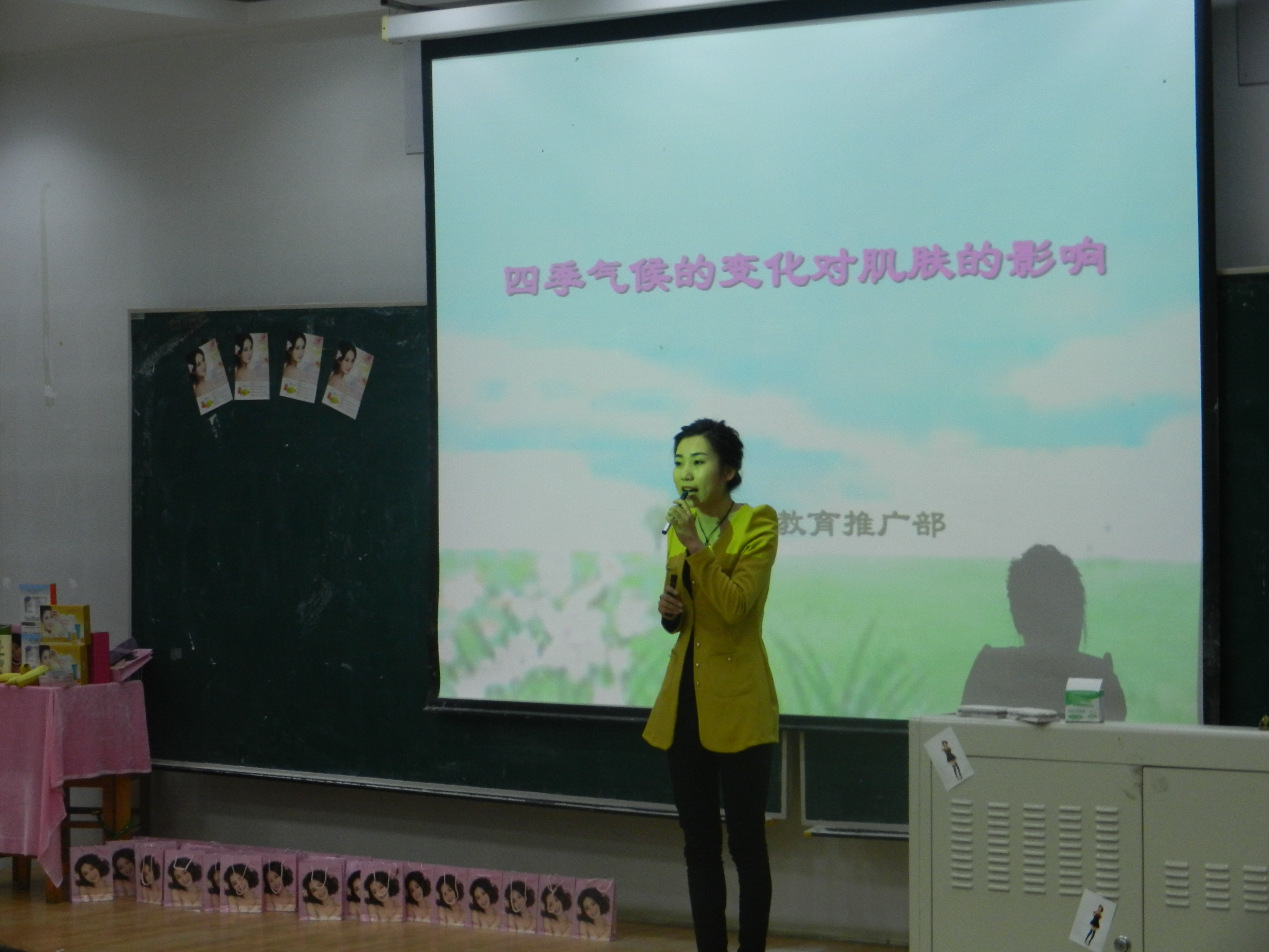 5月4日晚6:00,由商学院女生部主办的商务礼仪培训活动在经信F3阶梯教室开展。特约专业护肤师魏萍老师,讲师单云老师以及嘉宾商学院学生会副主席关山晓、女生部部长车君梦出席了本次培训活动。