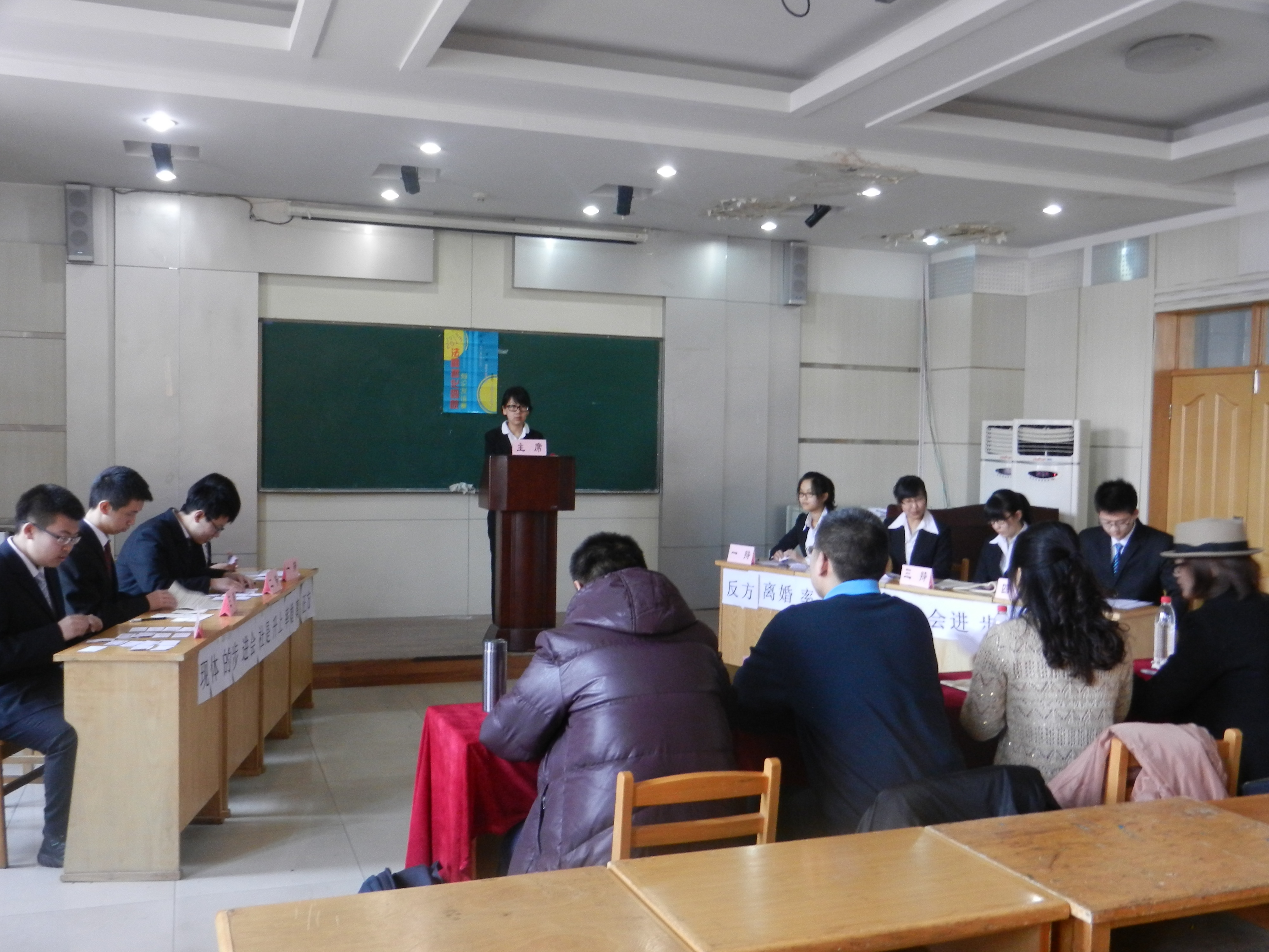3月24日上午,2013法商哲化四院辩论友谊赛在唐敖庆楼第四阶梯教室火热进行。十点整,商学院辩论队和化学院辩论队的第一场友谊赛准时开始。
