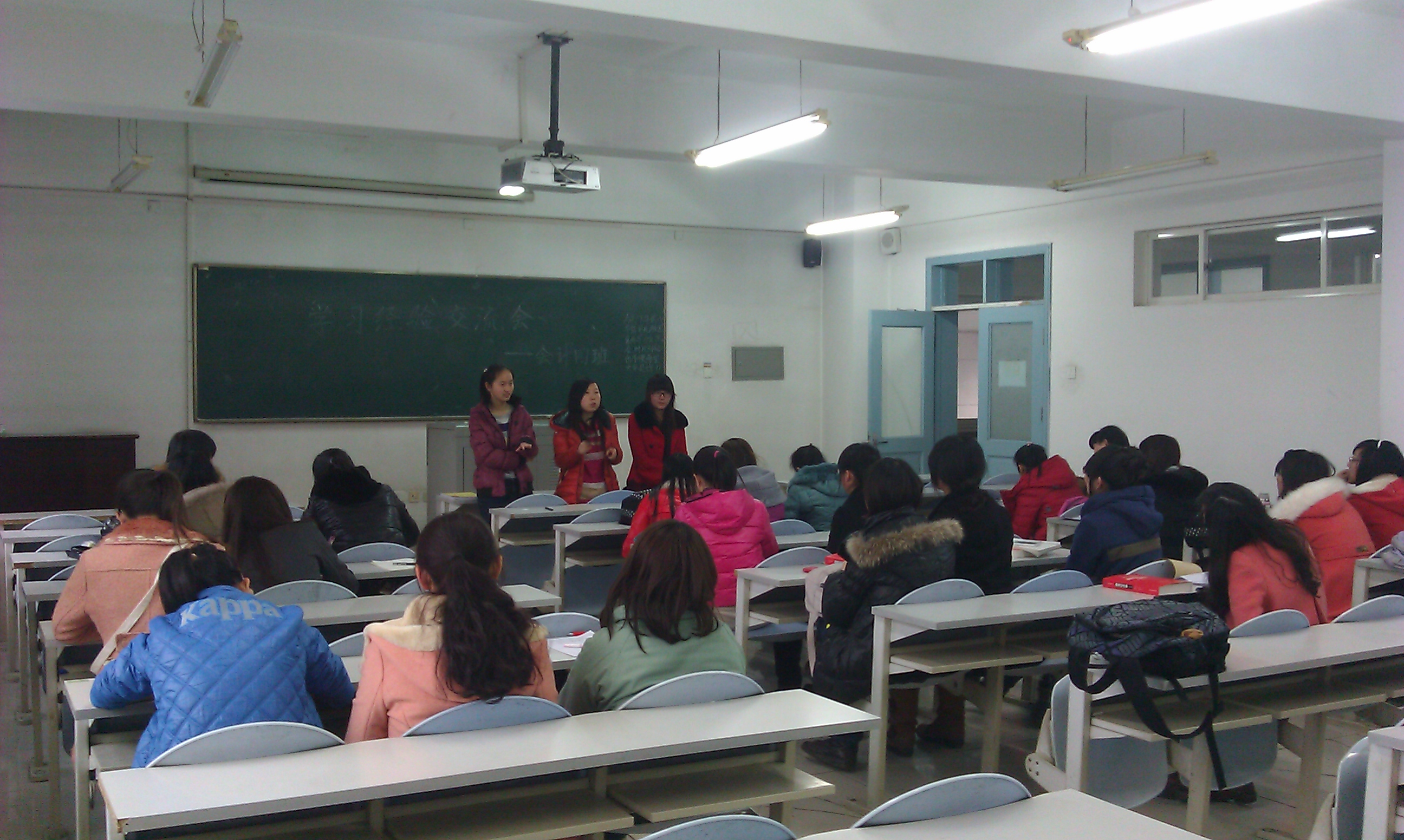 3月26日下午四点半,商学院11级会计四班的三位师哥师姐与12级会计四班全体同学在三教304室举行了学习经验交流会,分享学习经验,传递正能量。