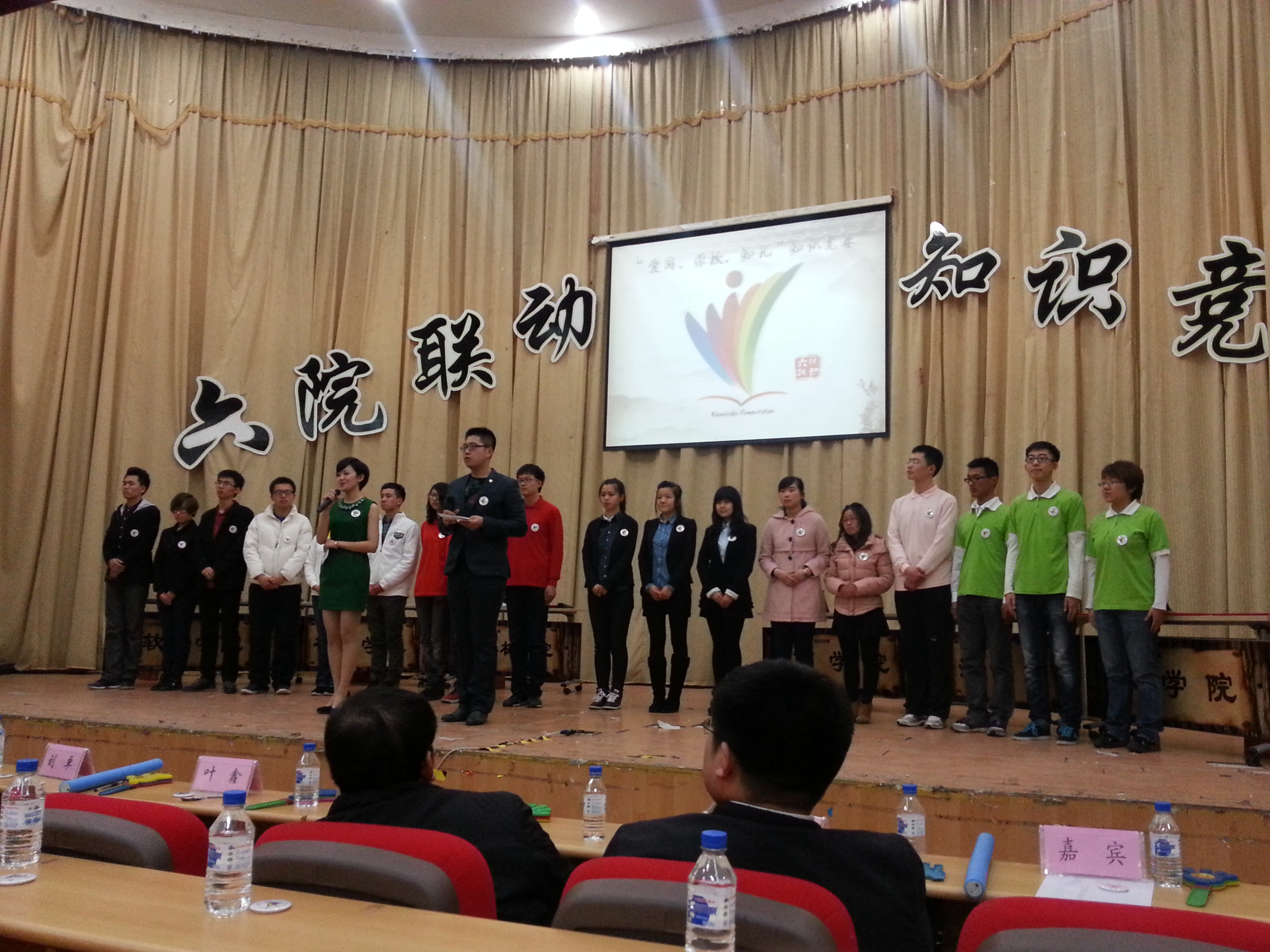 4月8日,经过激烈的前期竞赛,由商学院、文学院、法学院、行政学院、计算机学院、哲学社会学院、软件学院合办的“爱国、荣校、知礼”六院联动知识竞赛迎来了令人瞩目的决赛。六个学院最终代表队登上经信报告厅,展开激烈的角逐,为各自的学院增光添彩,商学院代表队派出了两女一男,与其他学院的高手一决上下。