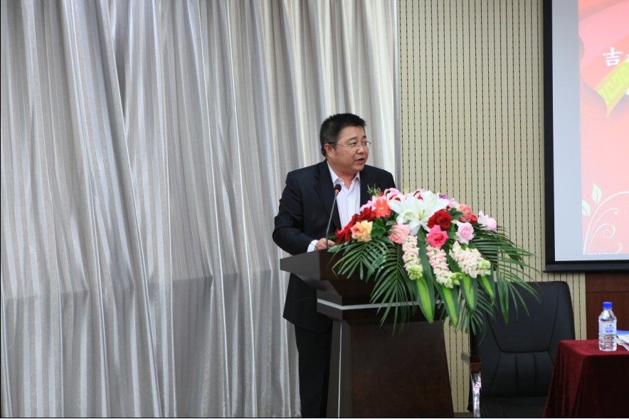 典礼上,吉林大学校长助理兼公共关系处处长刘新荣教授、吉林大学商学院院长刘金全教授分别致辞。