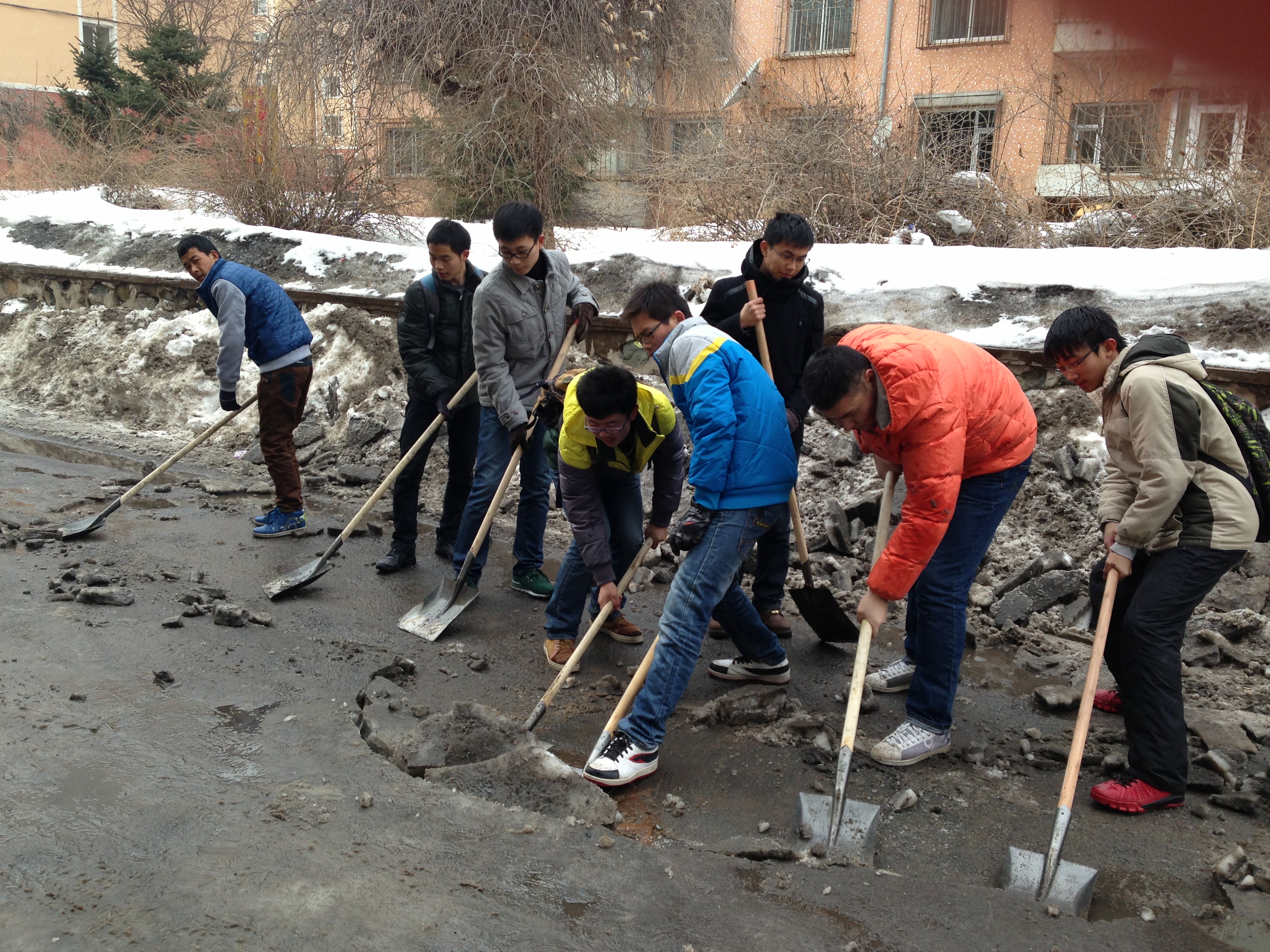 2013年3月5日新学期伊始,第五十个雷锋日如期而至,同时也是第十四个“中国青年志愿者服务日”。为了响应党的号召,学习和发扬雷锋同志“毫不利己,专门利人”的奉献精神,吉林大学商学院同心志愿者协会开展了“走进社区,破冰行动”的学习雷锋活动。