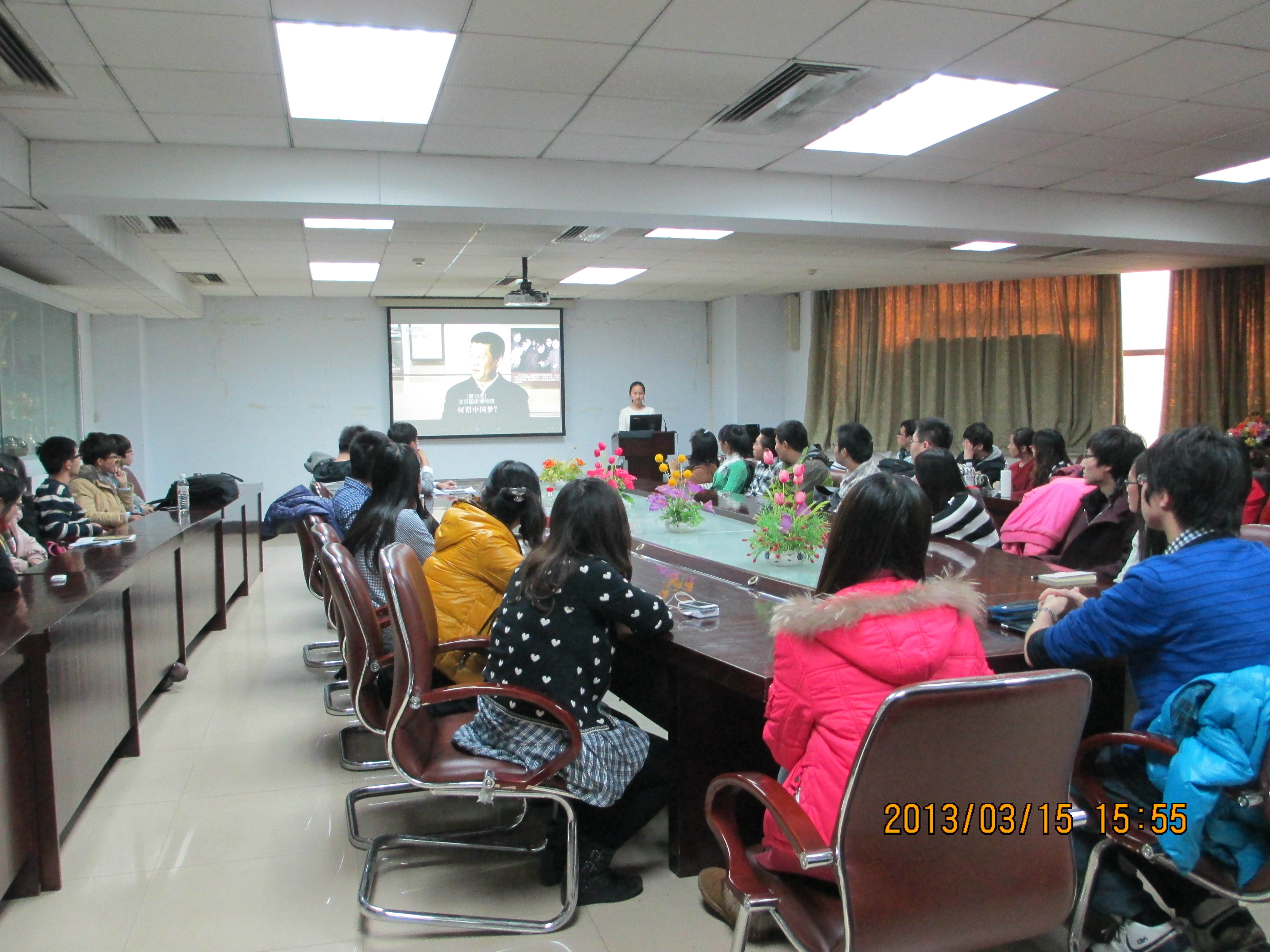 2013年3月15日下午,吉林大学商学院四大组织主要成员及社团主要负责人齐聚东荣大厦306会议室,学习两会主要内容及重要精神,并就“中国梦”展开深入讨论。商学院团委副书记蒋佳秀,学生会主席张骞予出席了本次座谈会。
