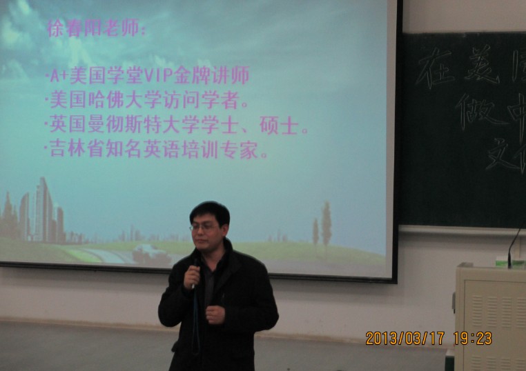 紧接着,由刚归国不久的徐春阳老师讲述西方文化,畅谈中西差异对比,在谈及出国经历时,幽默之处不乏求学的酸辛。中外的知名学府,古今的名人轶事,自己的求知生涯,侃侃而谈之余,又乐趣横生,极大地拓宽了同学们的视野,现场不时响起热烈的掌声。