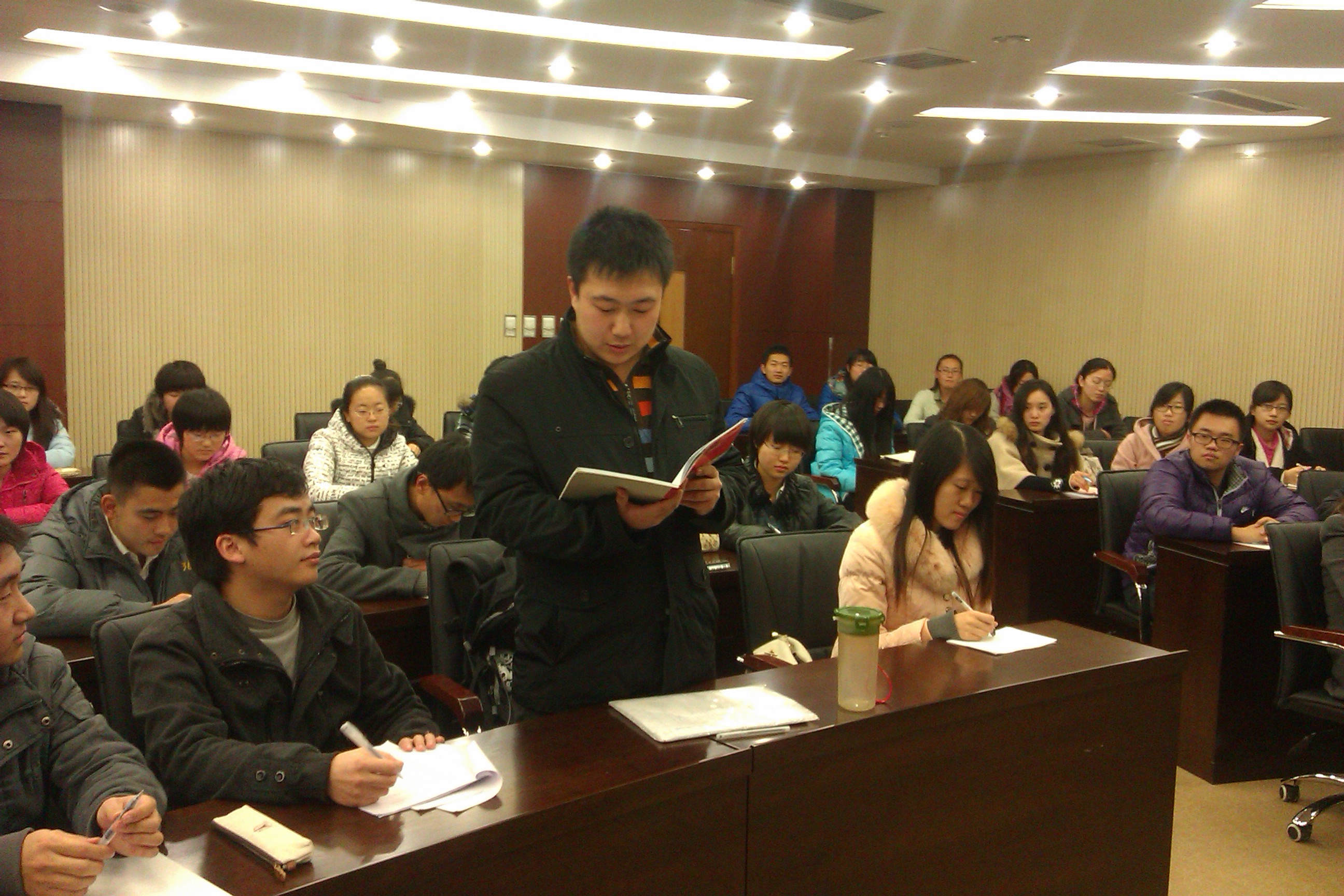 2012年11月7日晚九点,商学院本科生党支部组织“喜迎十八大”系列活动之“学习十八大精神”党员大会在东荣604召开。此次大会参与人员有商学院10级本科生党支部书记聂逯松老师以及商学院本科生党支部全体党员,本次党员大会由商学院10级本科生党支部宣传委员张宽同学主持。