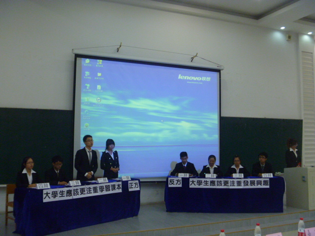 9月8日晚上6点,商学院2012级新生辩论表演赛在经信教学楼F1阶举行,商学院团委书记兼学生工作办公室主任、2011级辅导员梁志平老师,2012级辅导员荣诗达老师出席了本次辩论赛。此次辩论赛阵容空前强大,99级至08级的辩论队前辈都专程赶来参加新生表演赛,辩论队的温馨氛围和一脉相传的优秀传统感染了在座的每一位同学。