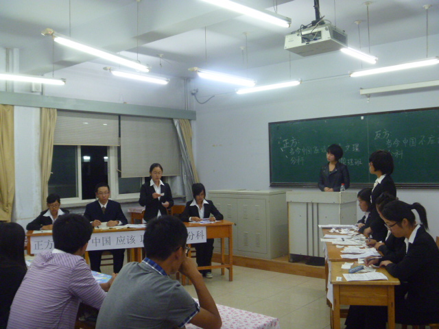 首先上演的是会计四班与会计五班的较量。本场比赛会计5班的同学作为正方,他们的观点是"宅文化使生活更加精彩"。反方会计4班的同学则持相反观点——"宅文化使生活更加颓废"。