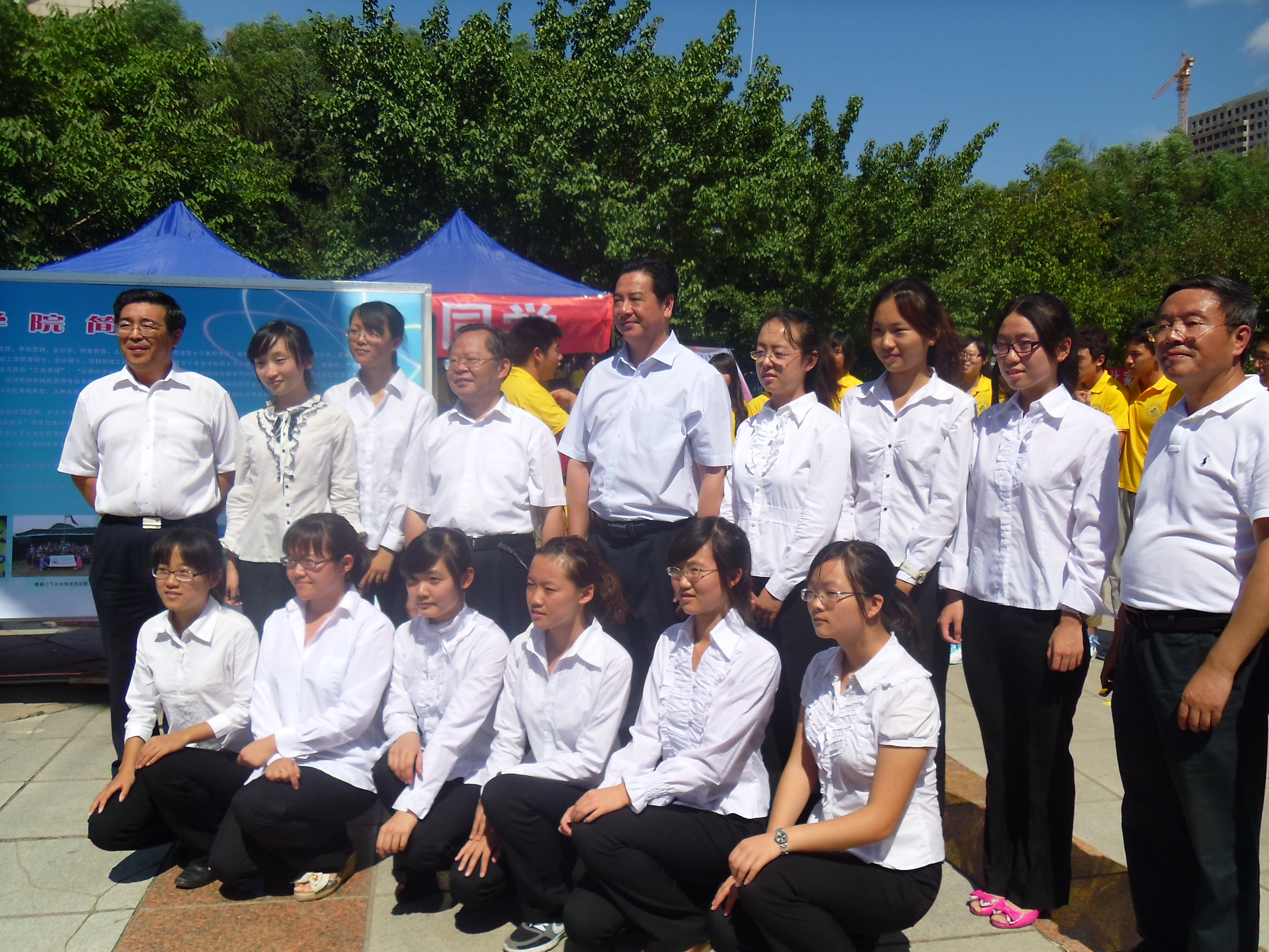 2012年8月25日,新生开学工作正式开始,校园内喜气洋洋,热闹非凡,各学院的大本营鳞次栉比地排成两列,热情地迎接着2012级新生的到来。为保证迎新工作顺利进行,确保新生接待工作的高效开展,吉林大学校党委书记陈德文,校长李元元,校党委副书记兼副校长韩晓峰,副校长张向东及各校部机关职能部门领导亲自来到五月花广场的迎新现场,检查指导迎新接待的各项工作。商学院党委副书记兼副院长范庆文、新生辅导员荣诗达对商学院新生接待的工作情况进行了介绍,