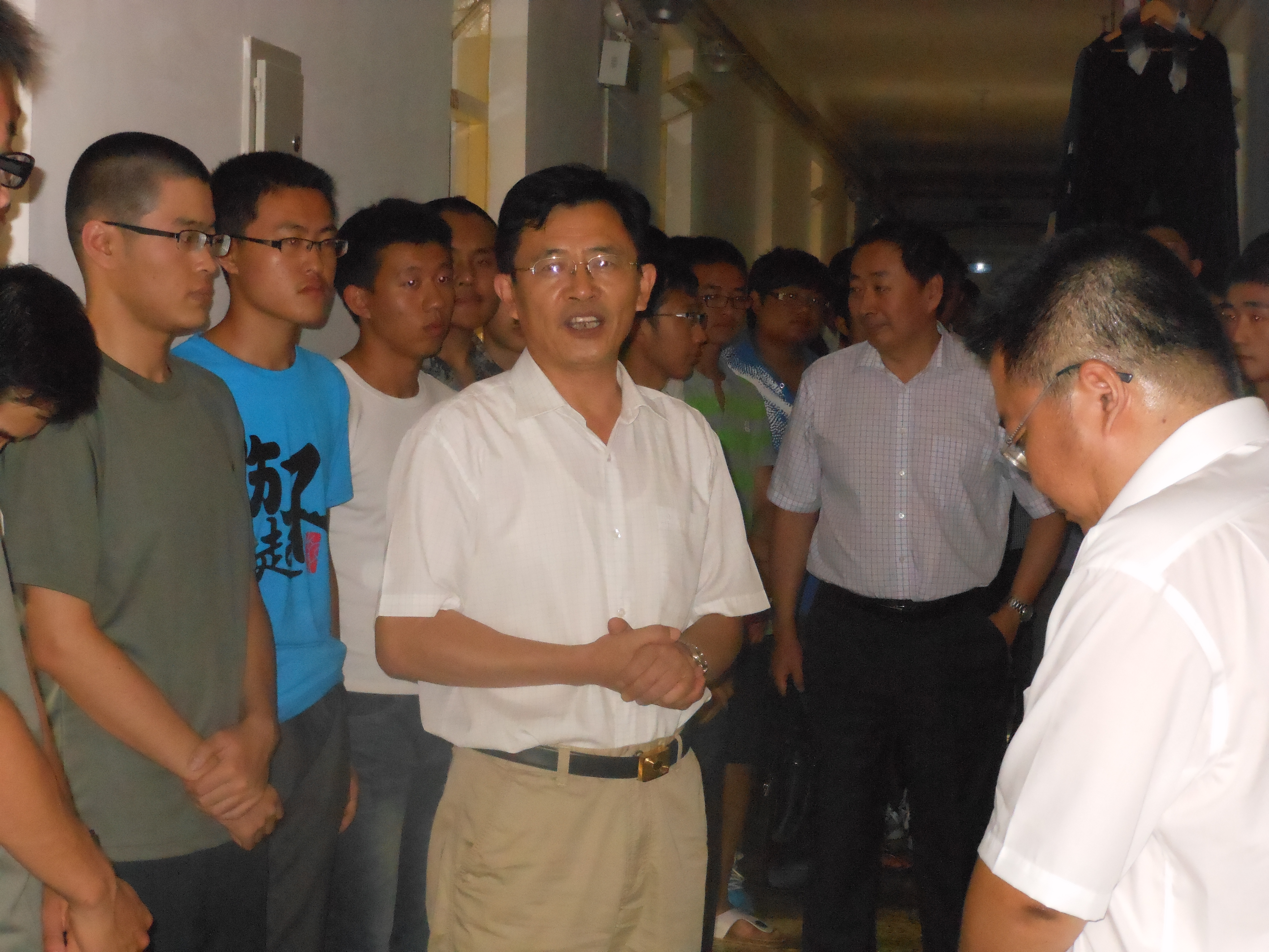 8月26日下午,商学院迎新工作暂告一段落。为了使新生感受到商学院大家庭的温暖,尽快适应大学的生活,商学院院长刘金全、党委书记蔡志刚、党委副书记兼副院长范庆文、副院长沈颂东、副院长庞晓波、副院长张世伟到学生寝室对2012级新生进行慰问。