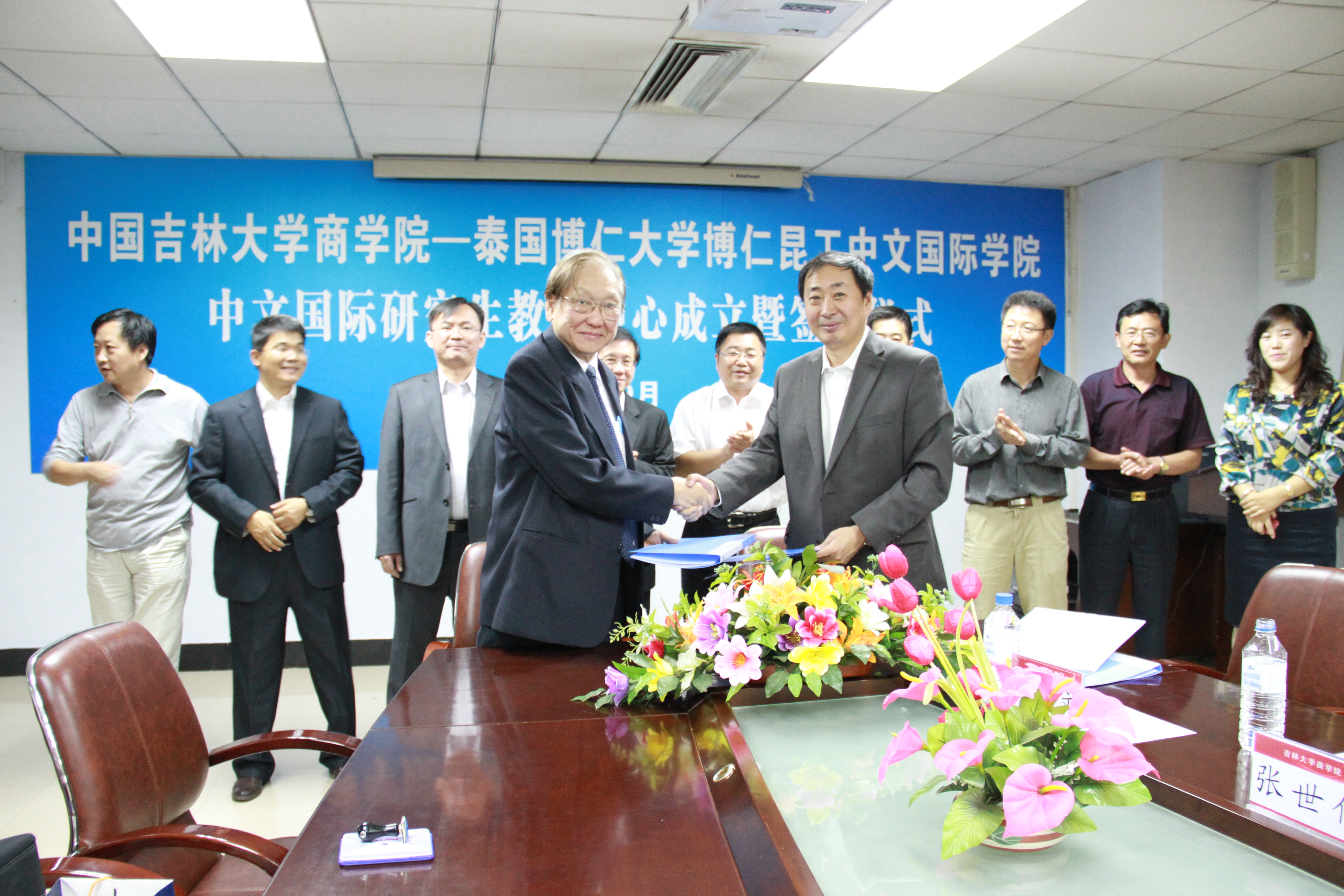 随后,泰国博仁大学名誉校长Prof.Boonserm Weesakul、吉林大学商学院院长刘金全签订了战略合作协议。