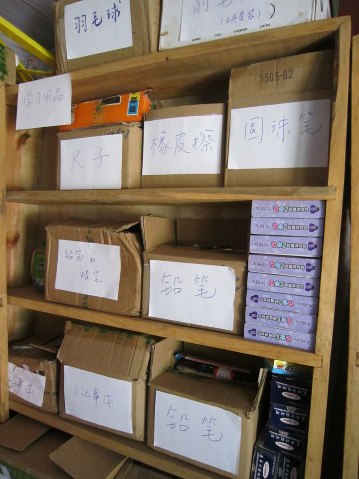 上完课的老师则在图书馆内进行着一项浩大的工程,对图书和文体用品进行分类并写好标签,以便老师和学生查阅图书、拿取学习用品。