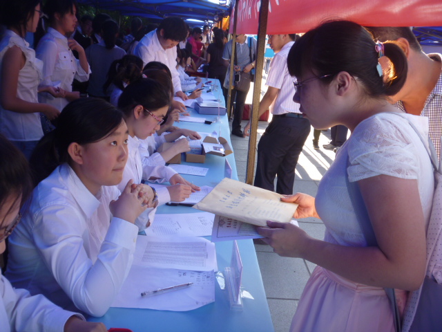 2012年8月24日下午5:00,迎接2012届商学院新生的工作还在一丝不苟地地进行着。正如报到处的条幅所写:“如日之初,奋而争上,吉大学子,商院最棒”,商学院的迎新工作无疑是全校的佼佼者。不断前来的商学院新生,让各小组的志愿者们忙得不亦乐乎。即使如此,报到处的各个环节仍然有条不紊地进行着。每一个环节都会有师兄师姐陪同,每一个步骤都会有师兄师姐辅助。高效的办事效率,亲切的待人态度,很快就建立了新生及其家长对商学院学生的认可与信赖。