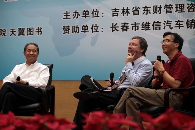 吉林大学商学院院长刘金全、吉林大学商学院专业学位教育招生办公室主任王世强、东财管理咨询有限公司总经理李宁、北欧国际管理学院总经理赵威以及天翼图书总经理李月庆出席了本次论坛。刘院长致开幕词,他强调吉林大学商学院正在进一步引进优质的教育资源,依托商学院的精英教育团队,构建商学院国际化的师资网络,在高级管理人才培训领域打造特色的教育模式和教学理念,为吉林、为东北,为全国培养具有全局性战略意识的,高层次、现代化的管理人才!并感谢吉林省东财管理咨询有限公司五年来作为优秀的合作招生单位,所展现出的积极开拓的企业精神、现代全方位的服务理念、优秀的资源整合能力以及卓越的团队业务能力。