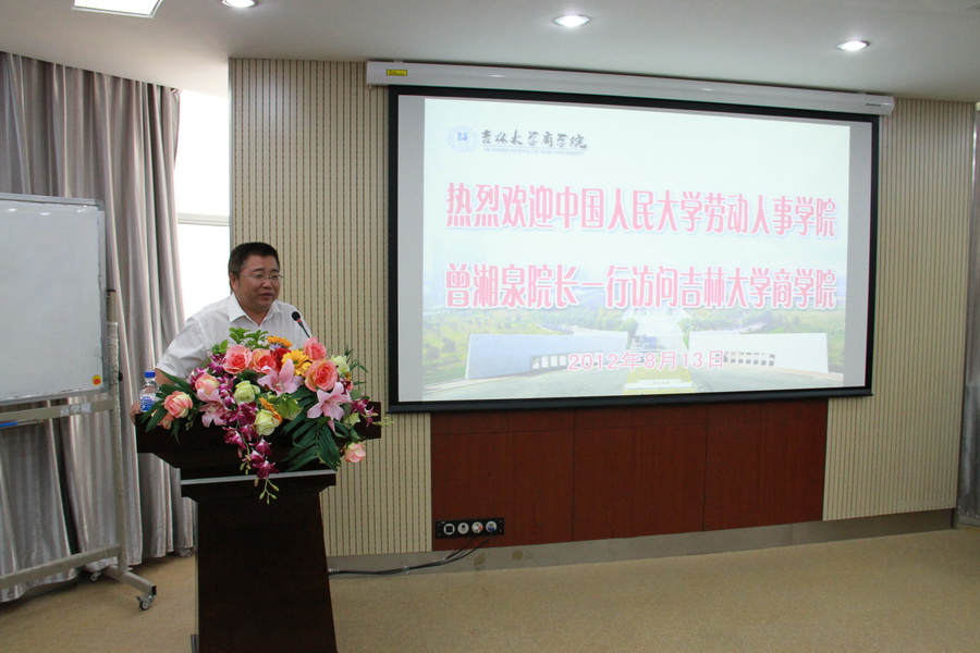 随后,劳动人事学院的曾湘泉教授向我院领导简述了中国人民大学劳动人事学院的发展情况。劳动人事学院成立于1983年,由中国人民大学与原国家劳动人事部联合创办,2000年隶属关系归为中国人民大学。现有劳动经济学、劳动关系、人力资源管理、社会保障和职业开发与管理5个系;有劳动科学学术资料中心和劳动科学实验室;拥有劳动与社会保障、人力资源管理和劳动关系3个本科专业;劳动经济学、劳动关系、人力资源管理和社会保障4个硕士点;劳动经济学、社会保障人力资源管理、劳动关系交叉学科4个博士点;与其他院系共享一个应用经济学博士后流动站。其中劳动经济学为国家级重点学科,社会保障学科为北京市重点学科。同时,劳动人事学院与吉林大学和商学院都颇有渊源,有多位教师毕业于吉林大学;目前在籍的人力资源管理专业研究生则有多名是由吉林大学商学院选拔推荐的优秀本科毕业生。曾院长说到,希望两院在现有的基础上,能够进一步交流,加深合作,为双方的发展奠定坚实的基础。