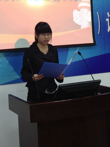 宣誓结束后,09级党员金博同志作为老党员代表发言,她向刚刚加入中国共产党的同志们表示祝贺,并告诫大家要深刻认识到与老一辈党员的差距,不断提高自我。