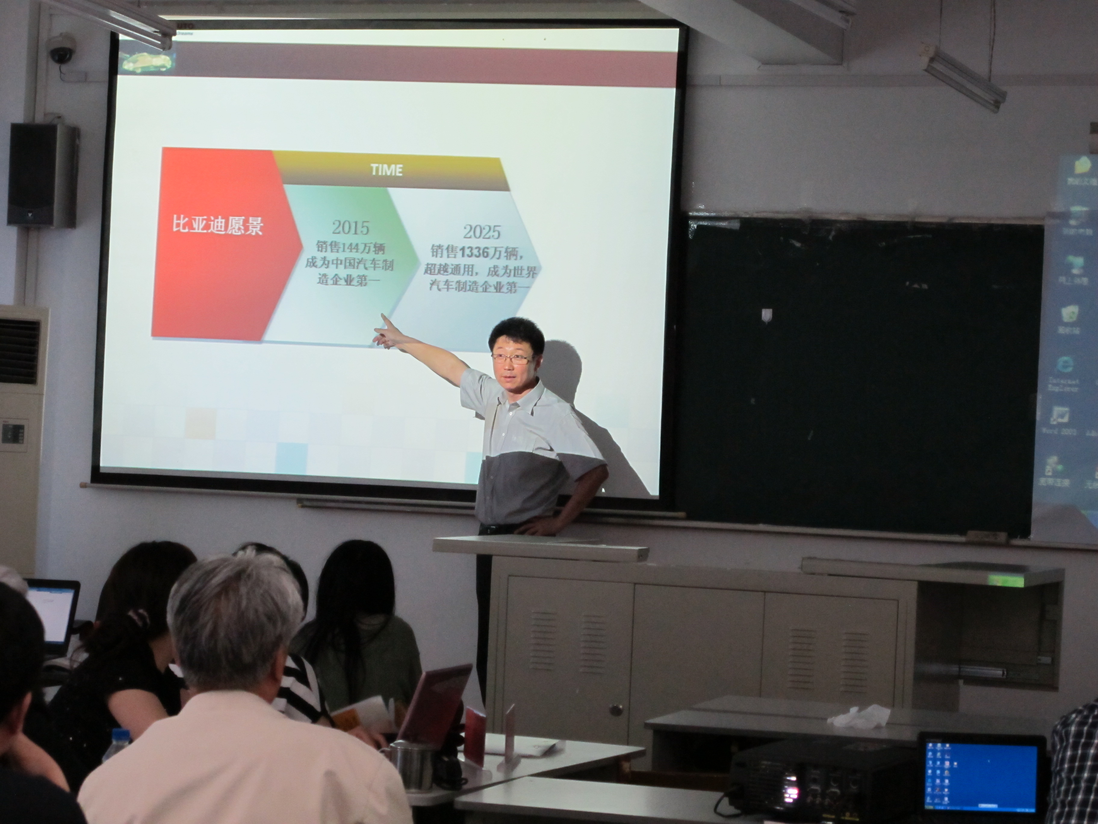 5月25日下午14:00,商学院MBA案例教学观摩课(战略管理)在逸夫教学楼215室举行,主讲人是商学院副院长邹国庆教授,选用的案例是比亚迪公司战略分析。2011级MBA全脱产班学员参加案例讨论。商学院部分教师应邀观摩并参与讨论。