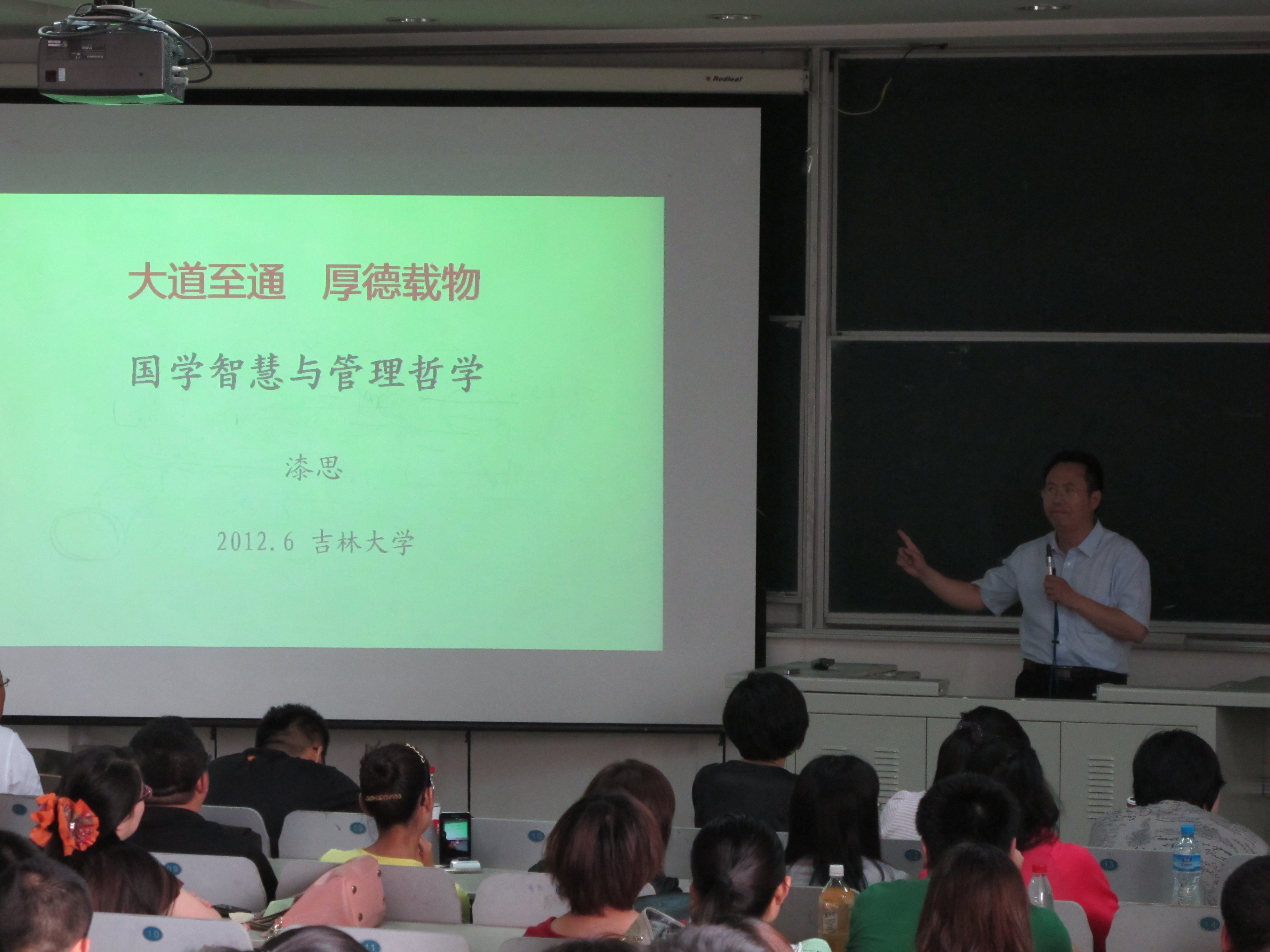 漆思教授认为,国学要培养的是胸怀天下的仁人志士,他勉励各位同学,要以天下、以民生为己任,做内圣外王,刚柔相济的新一代儒商,以厚德载物,谦虚纳下,自强不息为座右铭,为我国的经济建设和社会发展,为广大人民的福祉和个人的成就而努力学习,刻苦修炼,诚实奋斗,去成就一番大事业。