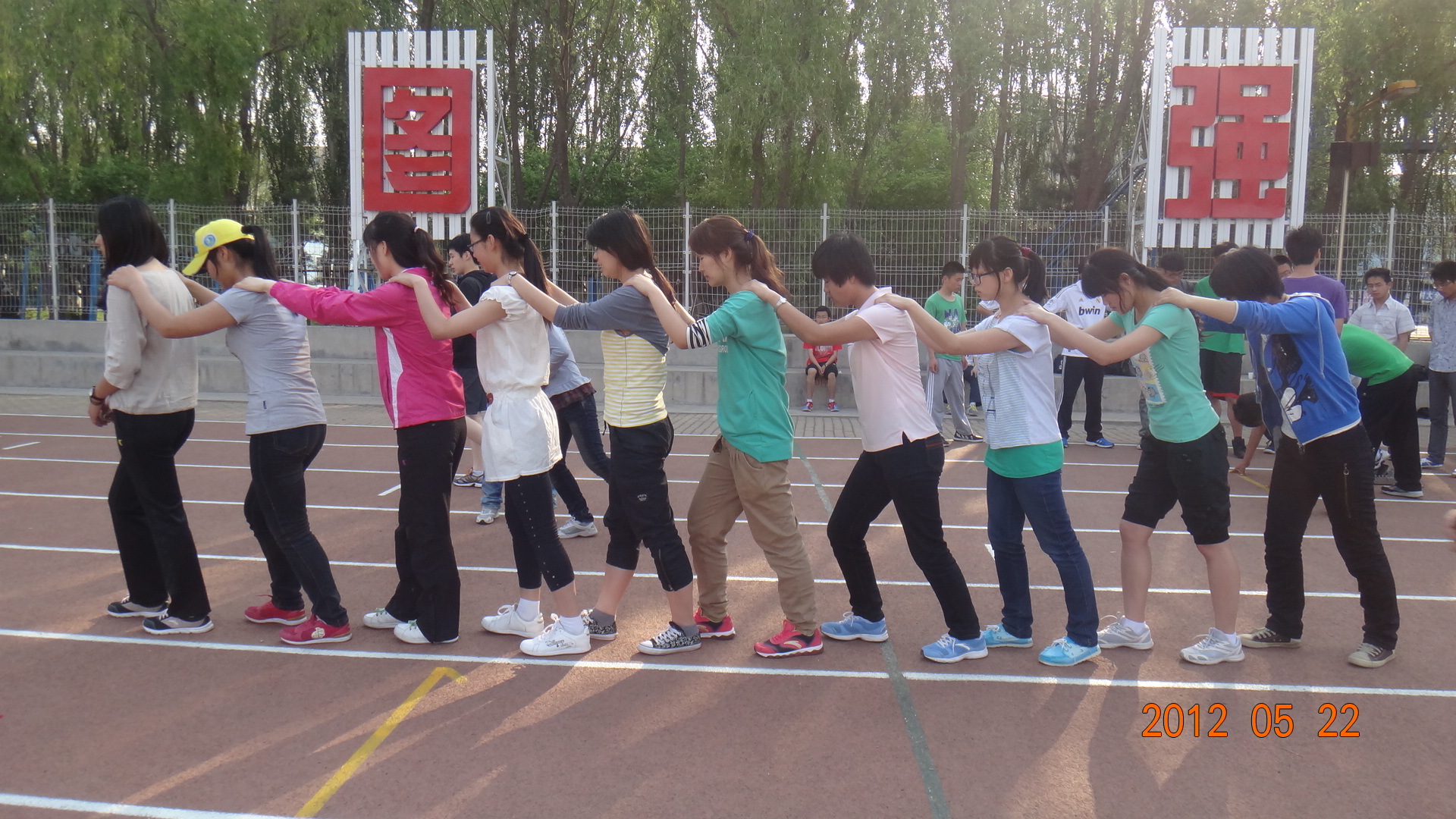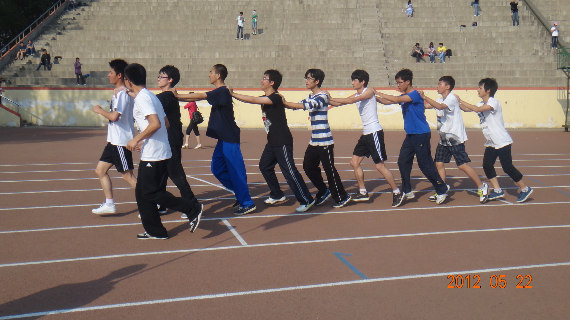 和平常一样,他们先是在学长学姐的带领下做准备运动,然后开始专项练习,他们身高差不多,配合默契,跑起来迅速有力,如同一列耀眼的明星列车。