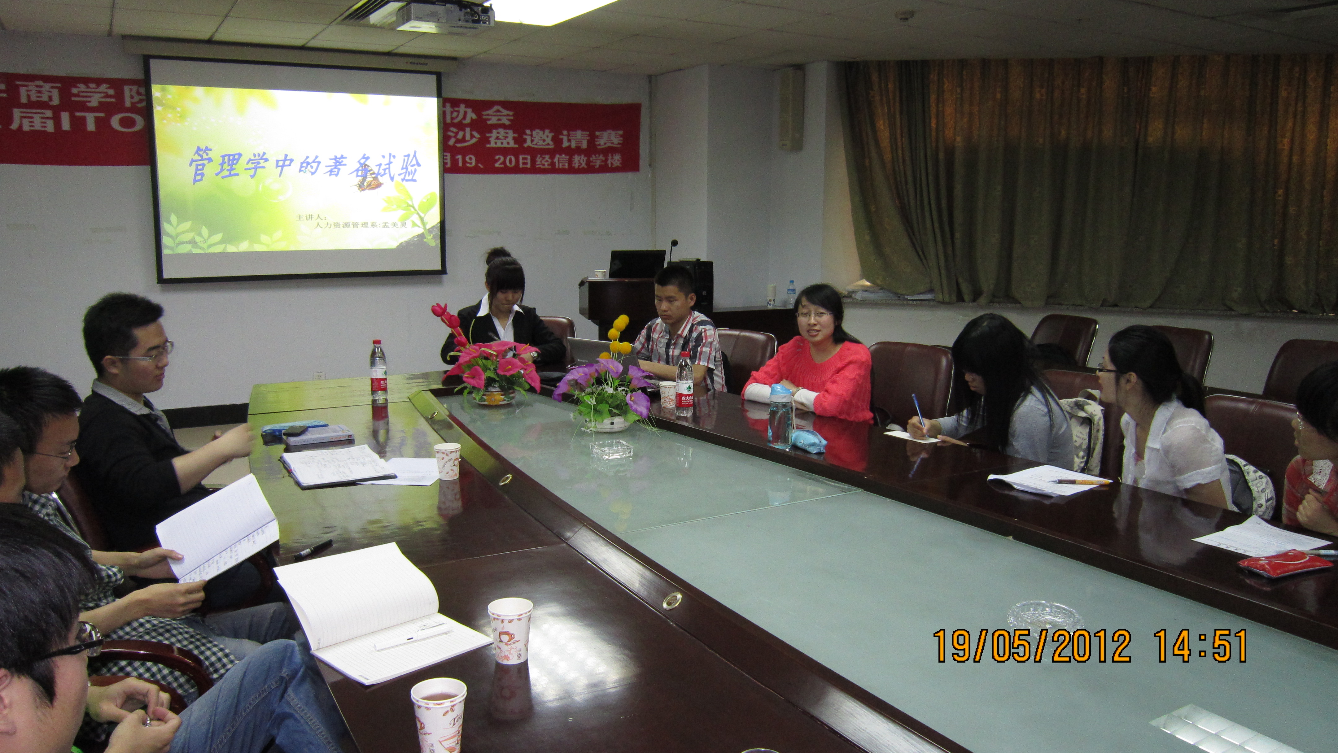 2012年5月19日下午2:00在东荣A区306室,商学院管理学研究小组开展了第五次交流会,会议主题为“管理学中的著名实验”。