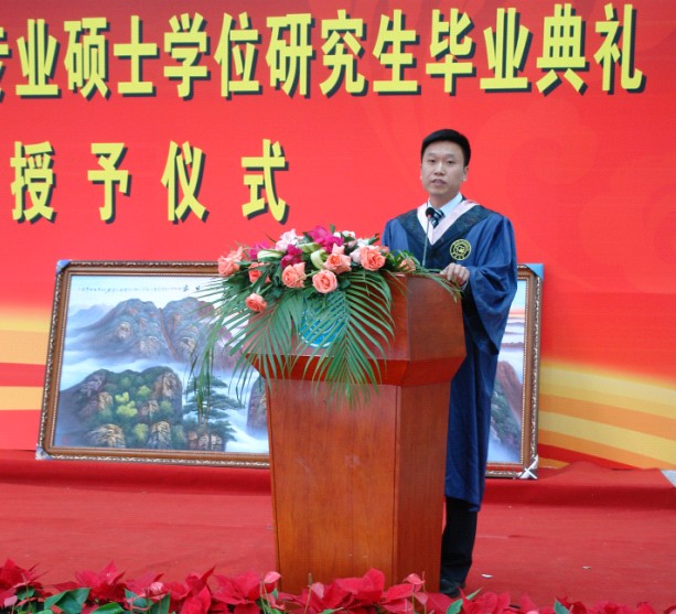 最后,学生代表张志宇进行了发言。他表示,通过在商学院的学习,大家收获了很多。感谢学校的大力培养,感谢老师的辛勤付出,感谢同学们的陪伴,也感谢自己和亲人的坚持。今天即使大家走出了吉林大学的校门,但是大家身上已经深深地烙上了吉林大学的烙印,大家会时时以吉大学子鞭策自己,为吉大争光,为社会多作贡献。