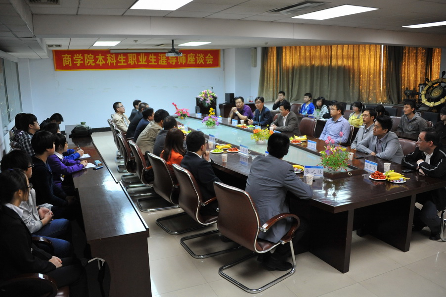 5月6日下午,商学院本科生职业生涯导师座谈会在东荣大厦召开。商学院副院长庞晓波教授、商学院团委书记兼学生办公室主任梁志平老师、商学院团委副书记兼学生办公室副主任聂逯松老师、商学院10级辅导员顾冬捷老师,来自于各企业的职业生涯导师们以及部分10级学生代表参加了会议。