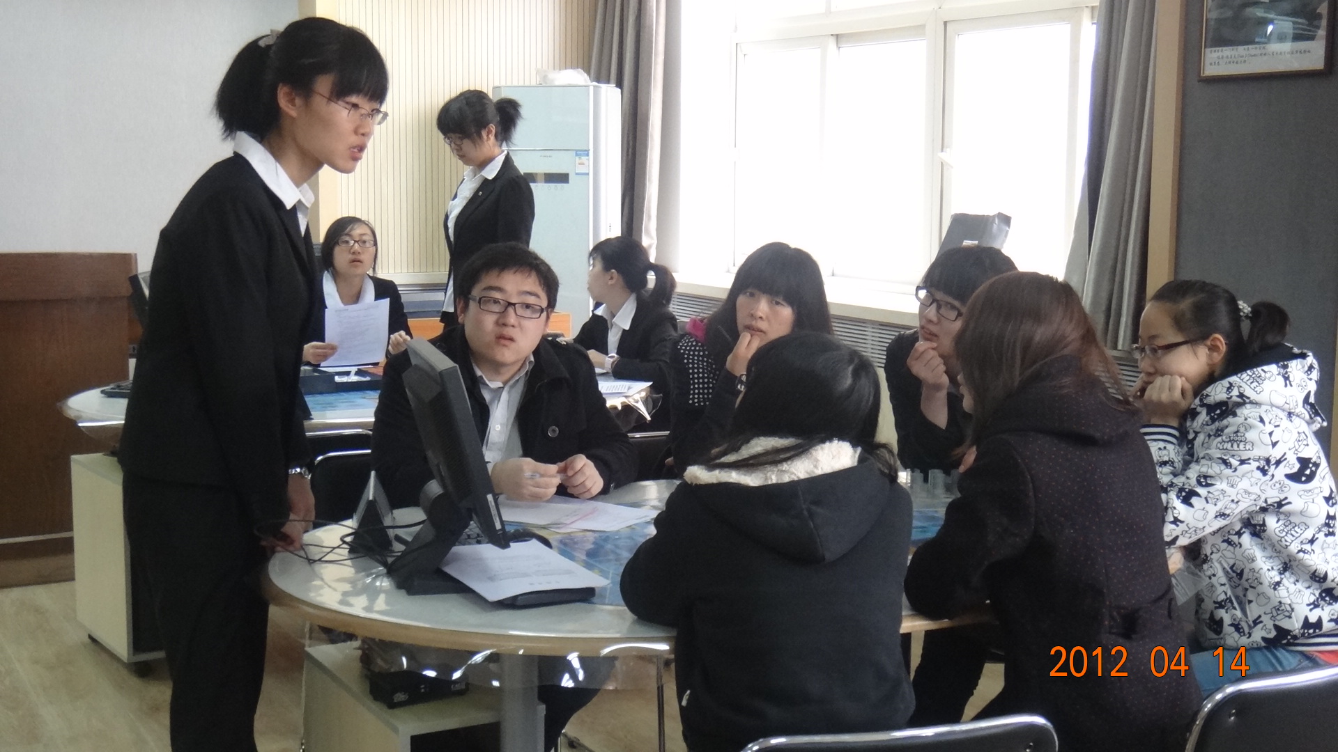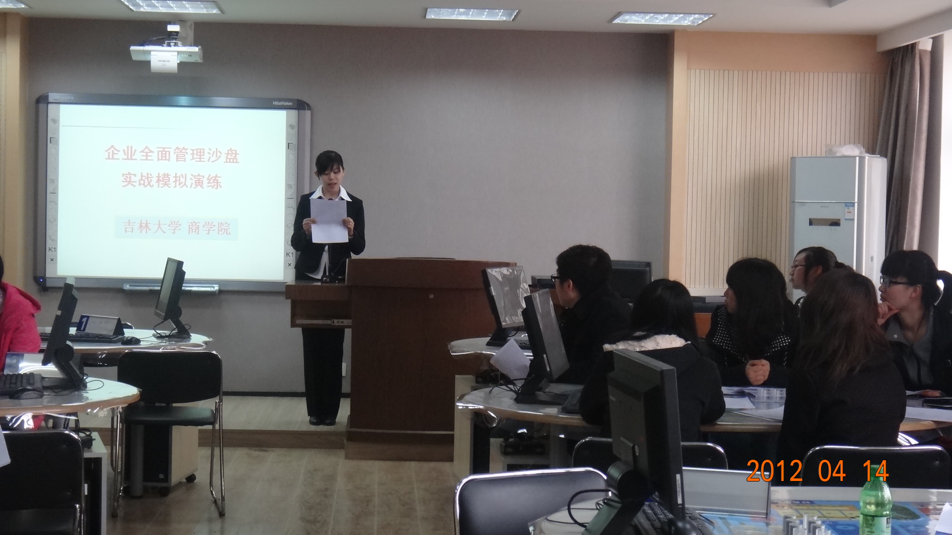 2012年4月14 日,为验收企业沙盘模拟培训的成果,在刚迁入新址的商学院ERP实验中心进行了培训后的第一次模拟大赛。