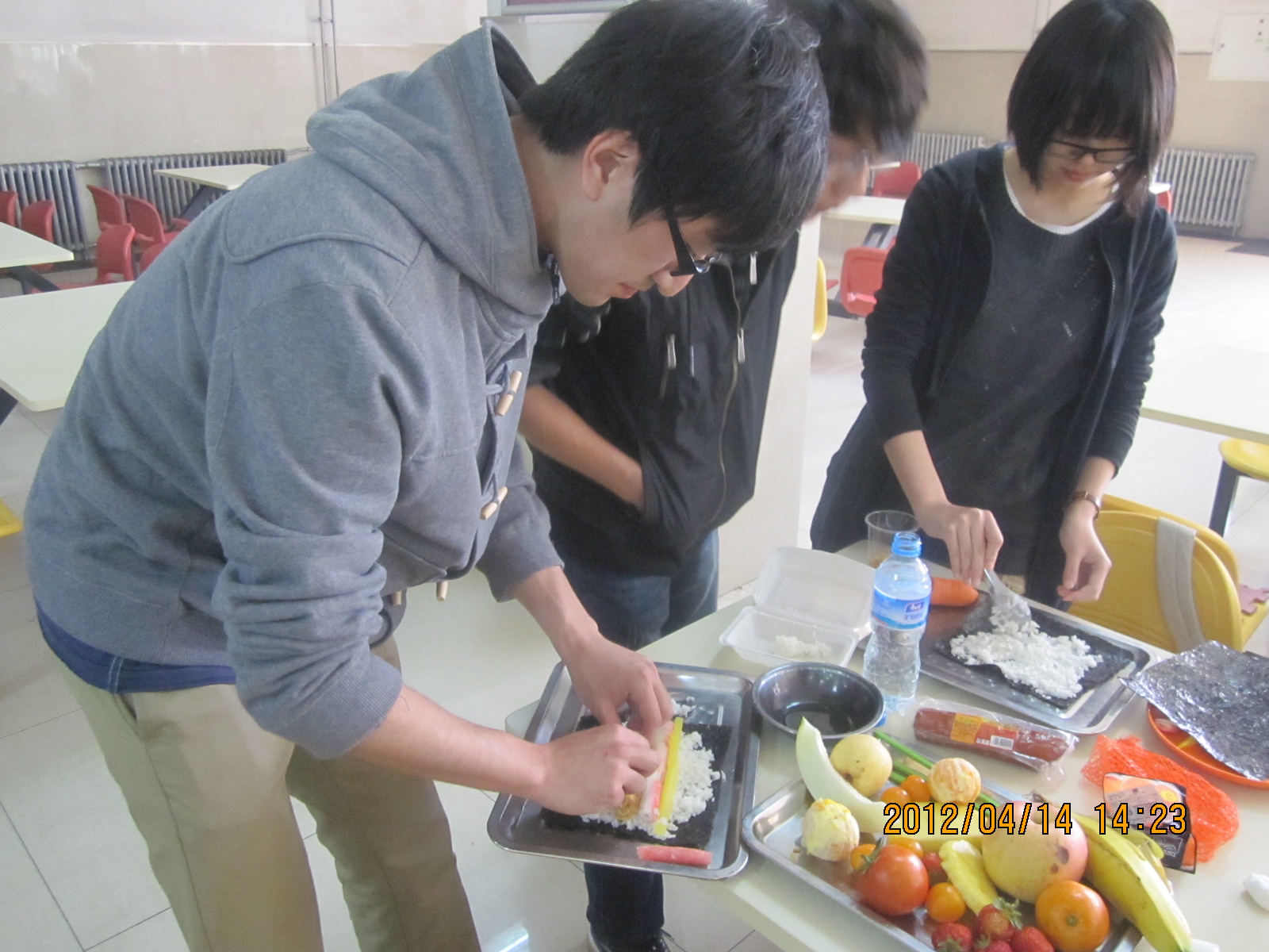 4月14日下午,商学院11级营销3班学生聚集在新食堂一楼,共同呈现了一场精彩的厨艺盛宴。此次活动的菜式以寿司、水果沙拉为主。