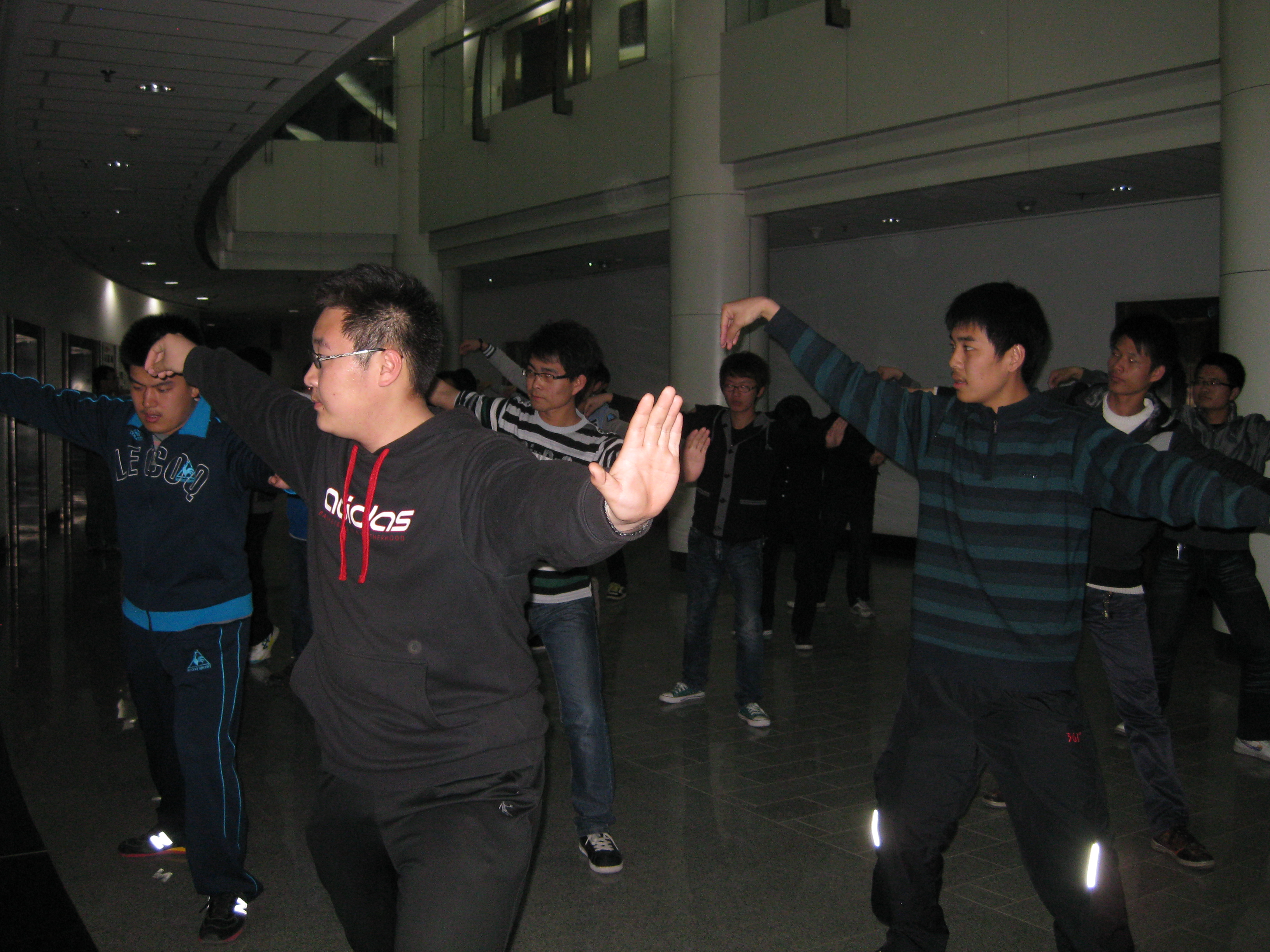 吉林大学第五十一届校运会临近,为了展现商院风采,商学院舞蹈团队和太极拳队都在紧张有序进行排练。2011年4月18日晚聂逯松老师、顾冬捷老师也亲临现场,陪伴同学们直至排练结束。
