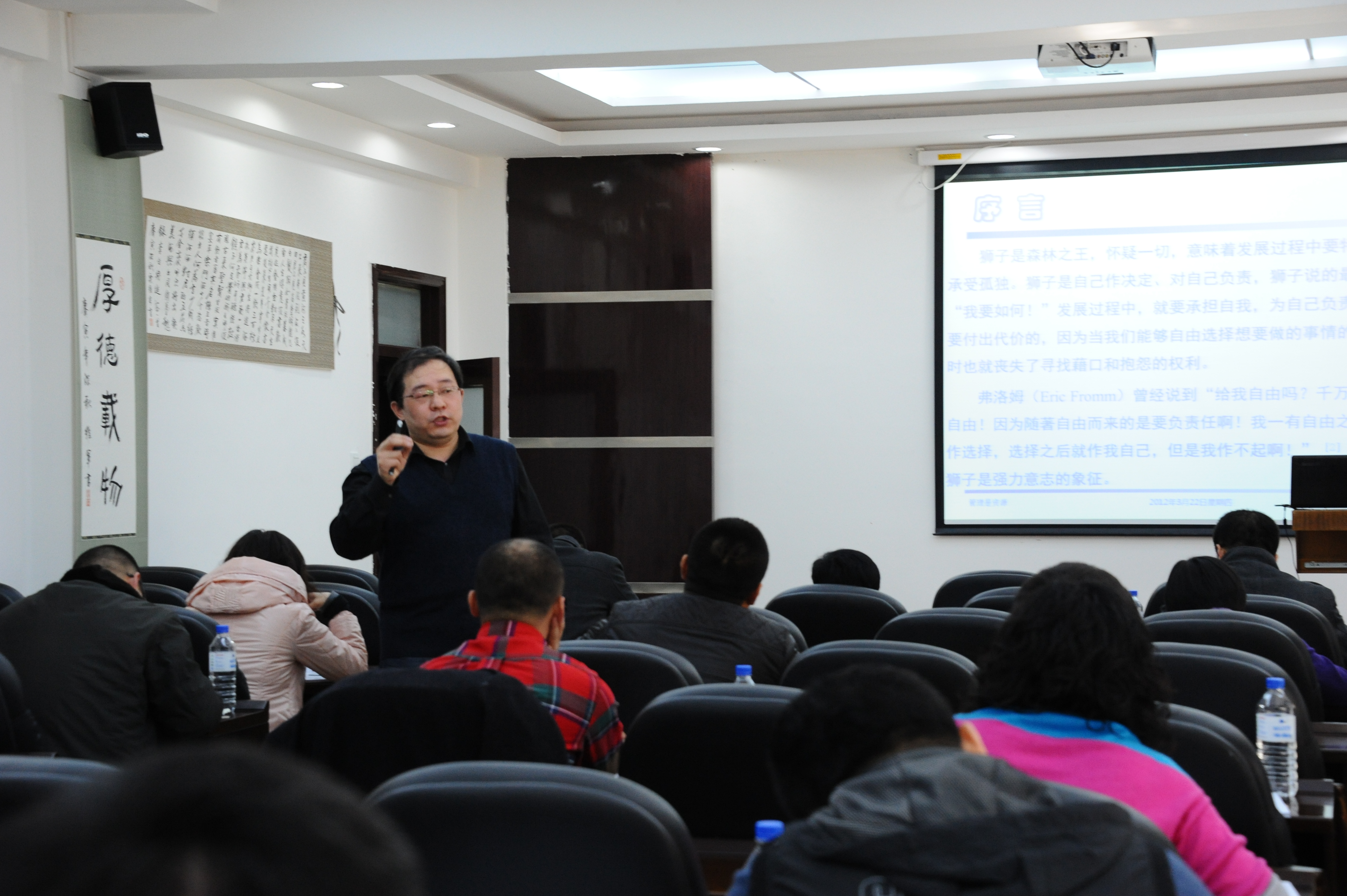 22日-24日2010级农发行班和2011级学员以及雪花啤酒的学员参加了由东北大学副教授主讲为期3天的《管理哲学》。孙新波老师长期从事管理学原理、管理哲学、易学与中国管理艺术、项目管理等领域的教学与科研工作,主要研究领域是管理哲学与领导力。